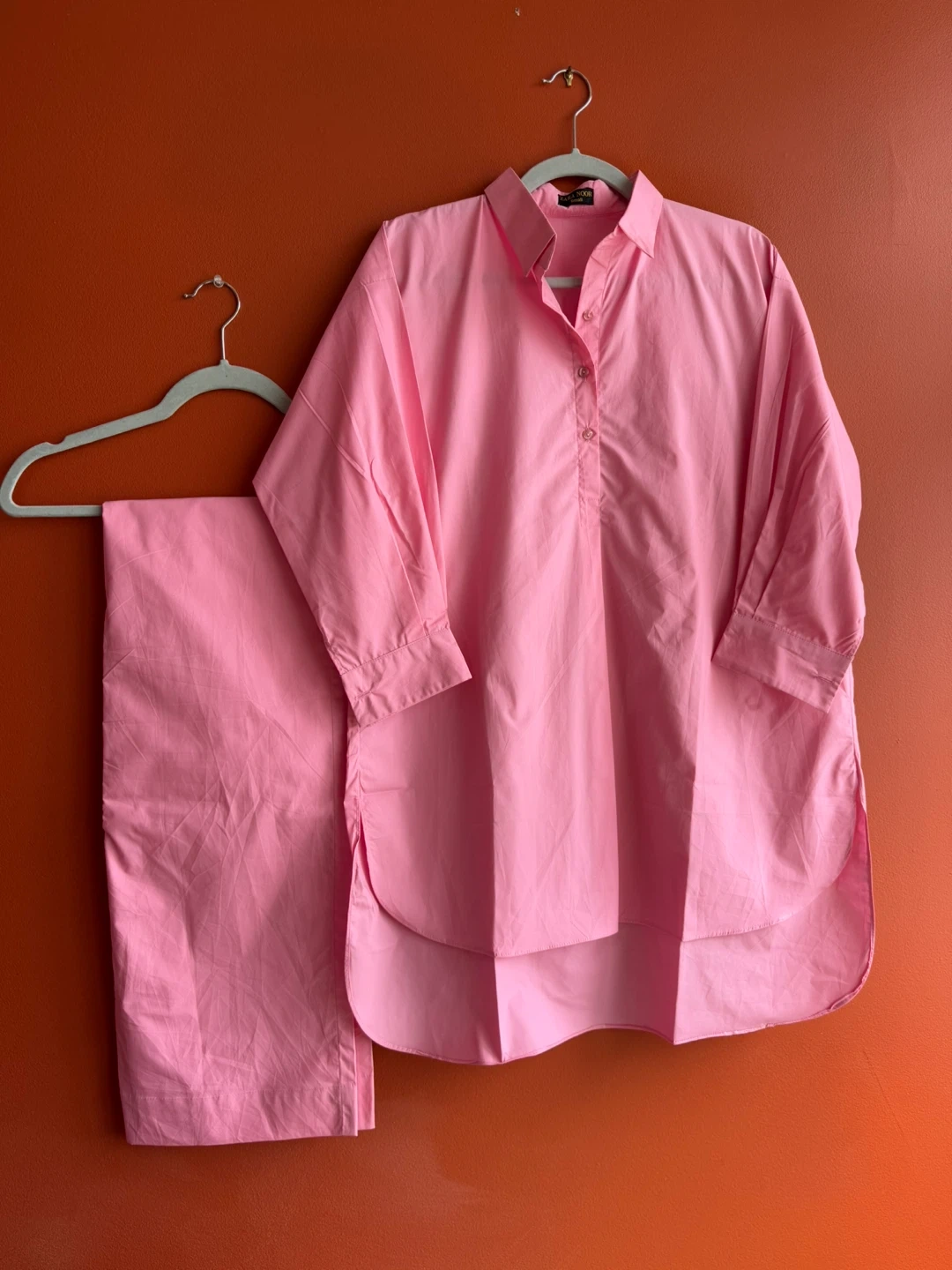 Selling a beautiful pink kurta pajama set from Noor. It's new and perfect for a casual or semi-formal occasion. The fabric feels nice and comfortable, and the colour is just lovely!