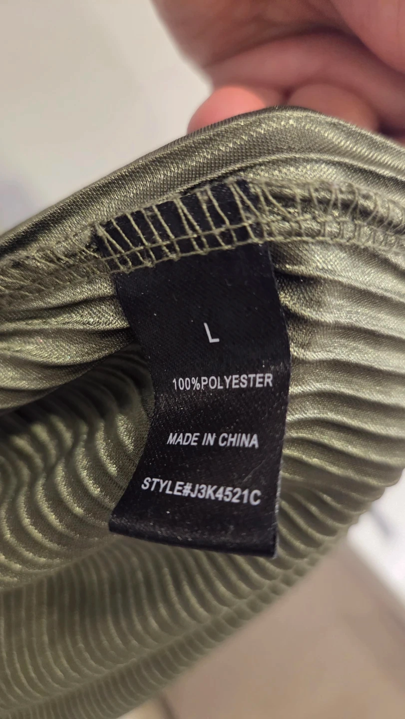 Fashion Nova collared button-up shirt dress in a striking olive green colour. It's made of 100% polyester with a distinctive ribbed texture. This dress features short sleeves and a chest pocket. Size is large.