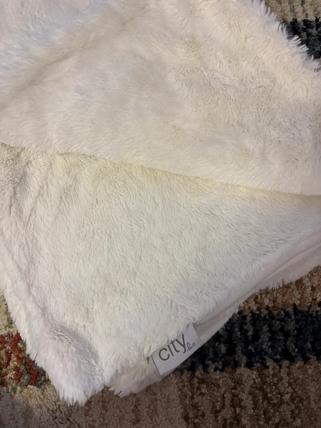 Selling a super cozy white throw blanket from City Home! It's in great condition and perfect for snuggling up on the couch during these chilly evenings. The material is soft and plush, making it extra comfy. It's a great addition to any living room or bedroom!