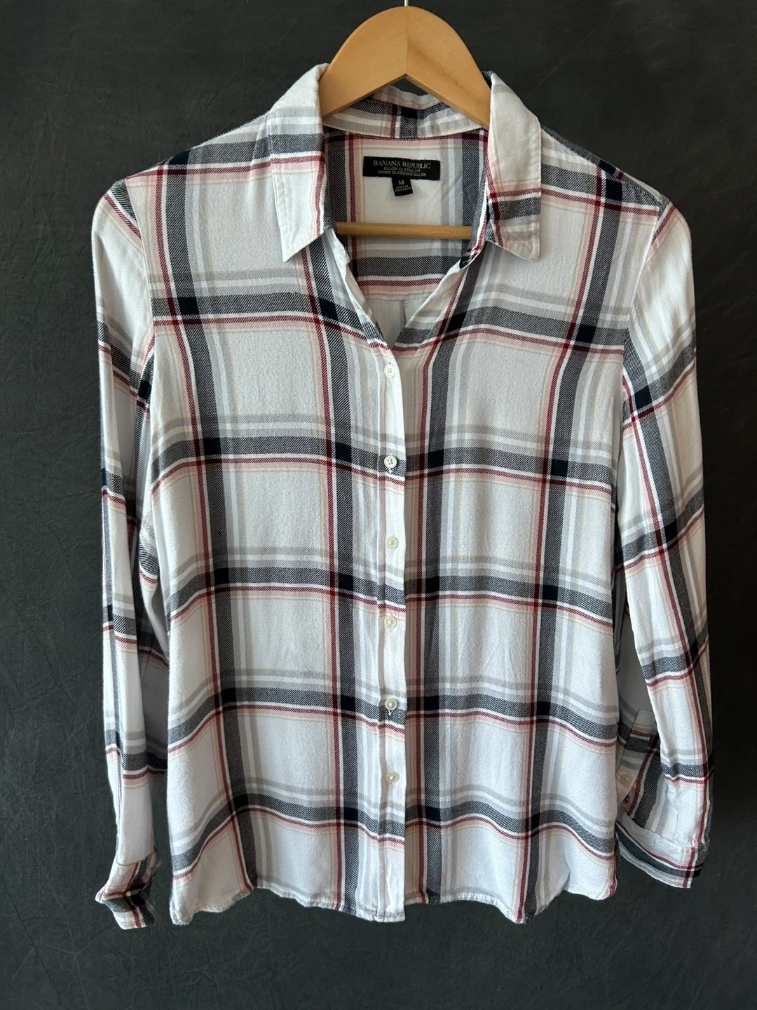 Selling a Banana Republic Dillon Classic Fit shirt in size M. It features a stylish plaid pattern and can be dressed up for the office or worn casually. Perfect for adding a touch of classic style to your wardrobe!