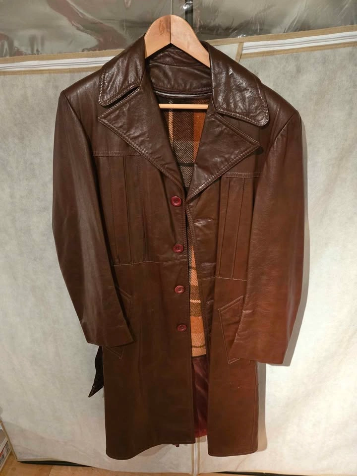 Brown leather trench coat with removable liner. All buttons and belt in good condition. Made in Canada. Size 36 (XS). Thrifted but in excellent condition. Well-maintained but it no longer fits me. From a smoke/pet-free home in the Heritage Mountain area. If the ad is up, it's still available.
