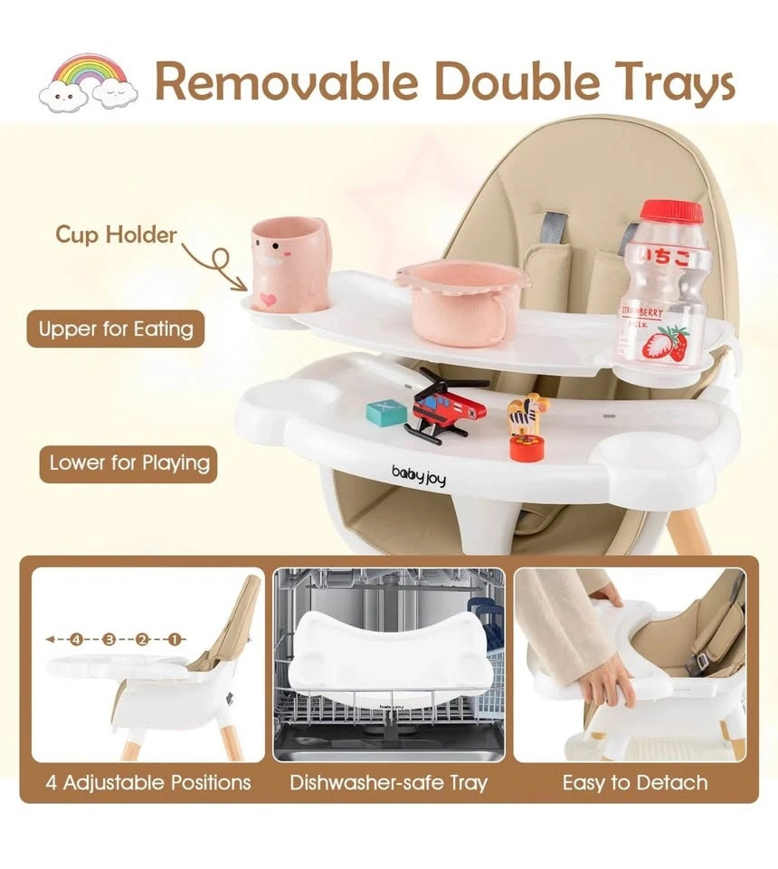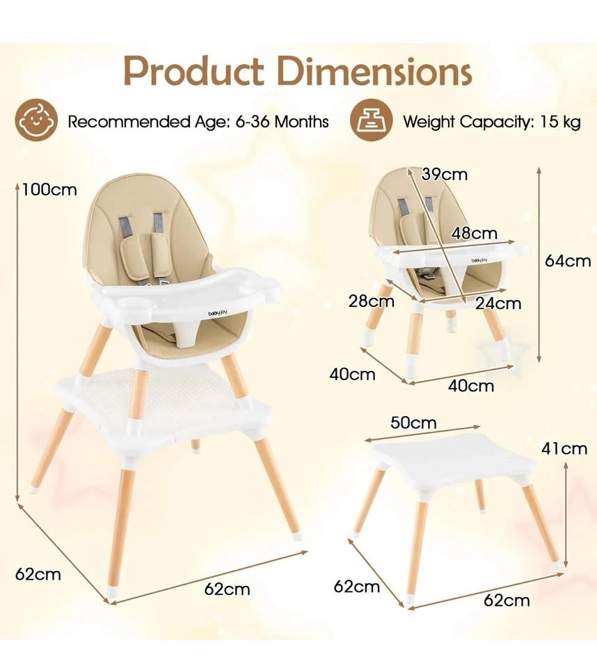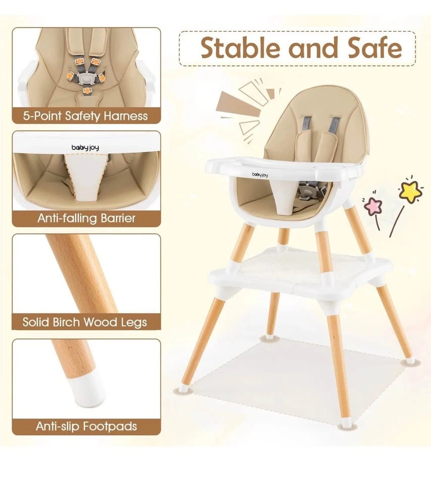 Brand new 6-in-1 Multifunctional Baby High Chair. It can be transformed into 6 useful configurations, such as a low chair, mini dining chair, stool, learning set, and play table, making it ideal for every stage of your child's development.