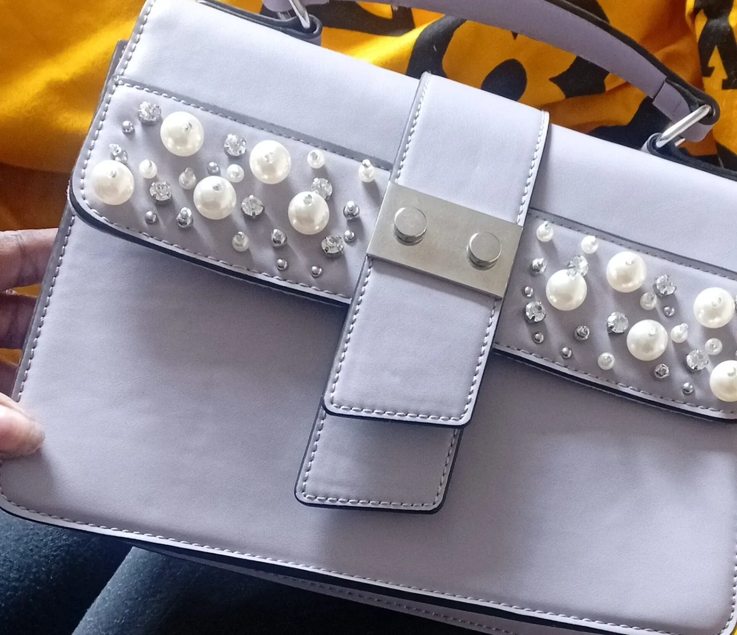 Call It Spring Lilac shoulder bag with pearls and rhinestones