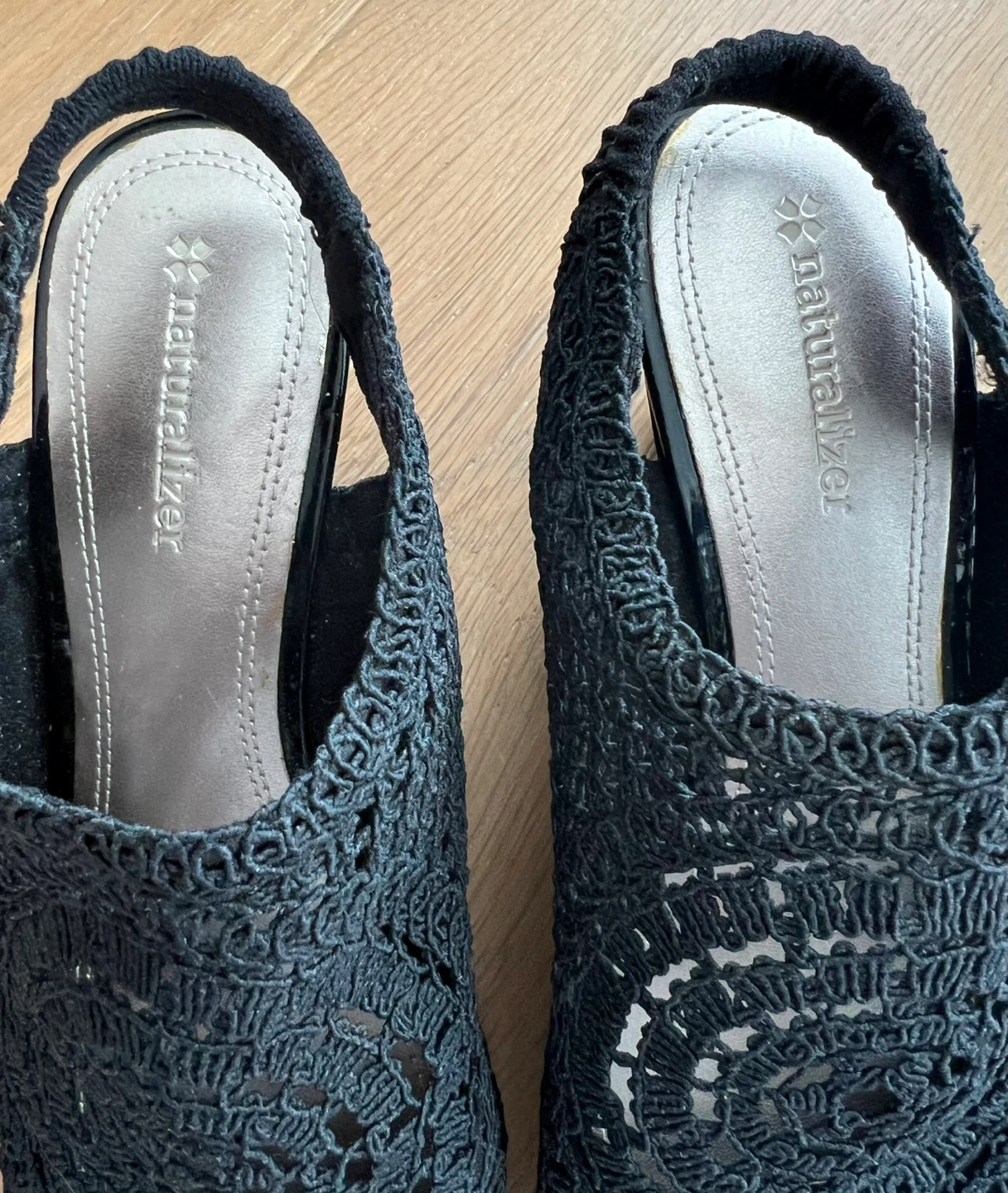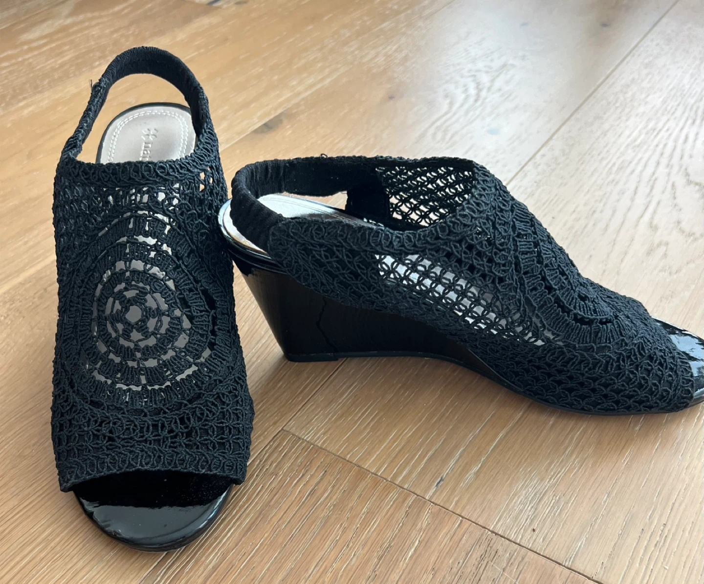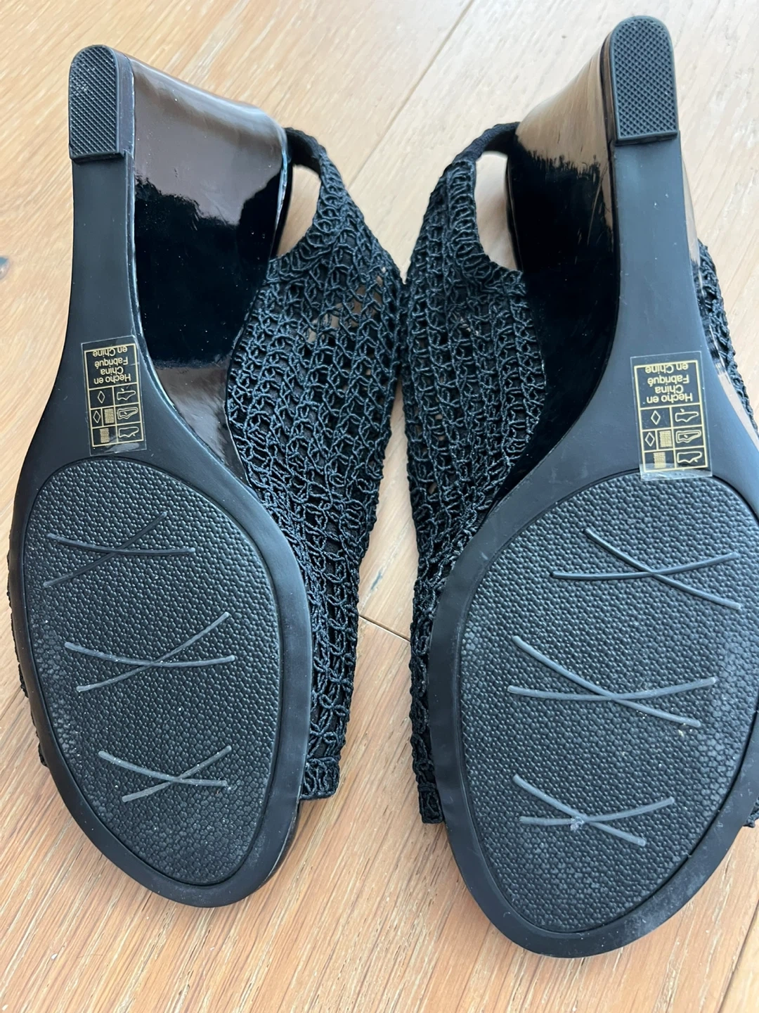 These stylish shoes feature a comfortable wedge heel and a unique crocheted design, perfect for adding a touch of elegance to any outfit. The shoes are in new condition and never been worn