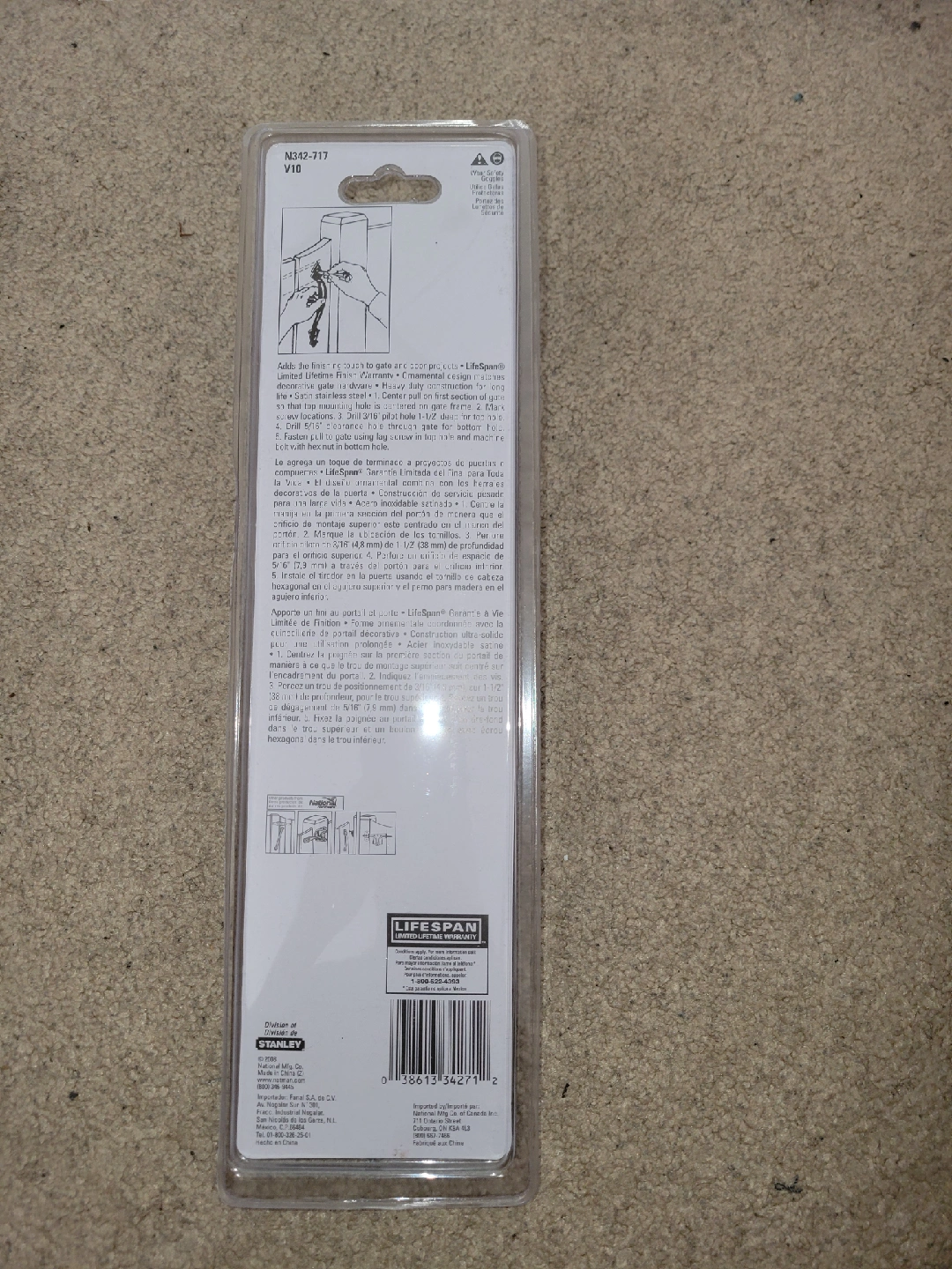 Selling a brand new National Hardware gate pull made of stainless steel. It's heavy duty and rust resistant, ensuring it's vinyl safe. Includes the necessary screws for installation. Perfect for adding a sturdy and stylish handle to your gate