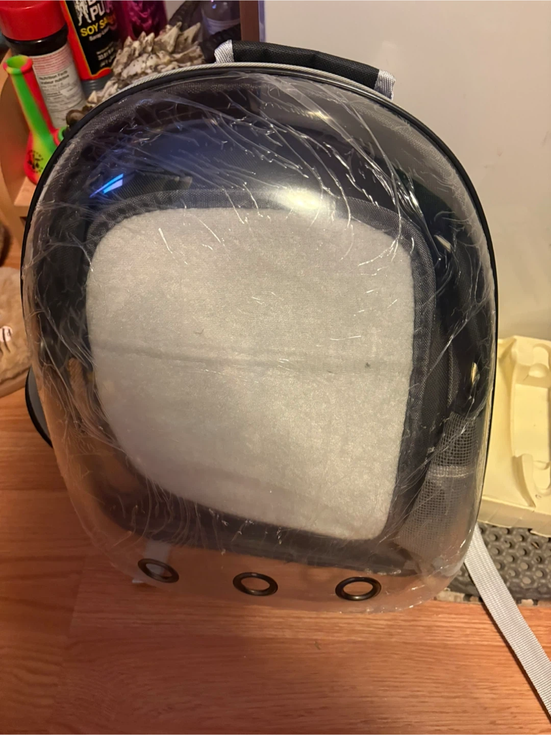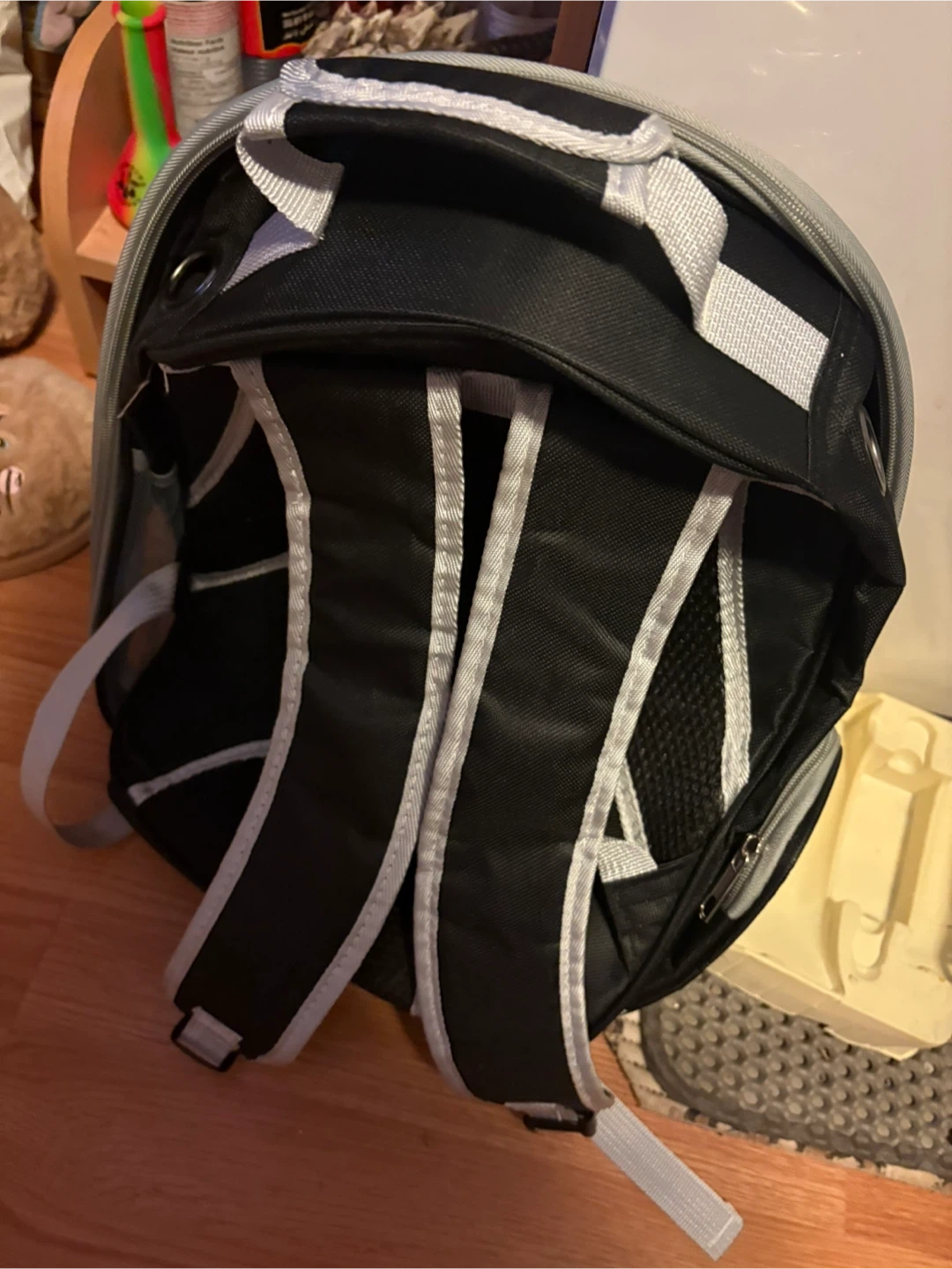 Selling a pet carrier backpack in black! It's perfect for taking your furry friend on adventures. The backpack has a clear bubble window so your pet can enjoy the view, and it's designed for comfort and safety. Great for cats or small dogs! Also have it in red