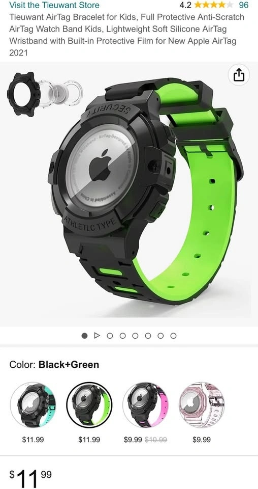 NEW in package. Designed for AirTag 2021 (AirTag not included). This protective bracelet keeps your AirTag safe from scratches and damage, without interfering with its positioning function. Made from skin-friendly, sweat-proof silicone, it's lightweight, dust-proof, and scratch-resistant. The adjustable band fits wrists from 5.6 to 8.8 inches, suitable for kids and adults. Please follow installation instructions for proper setup.