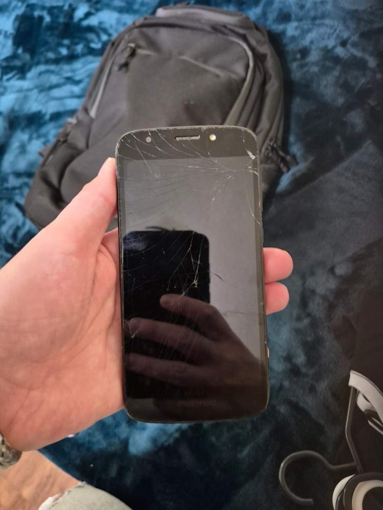 A used cellphone. The screen is cracked. . The Motorola and iPhone are cracked; the Samsung is in perfect condition but unusable as it is an old work phone and its locked. if someone wants all three phone for parts or tp fix them up selling all three