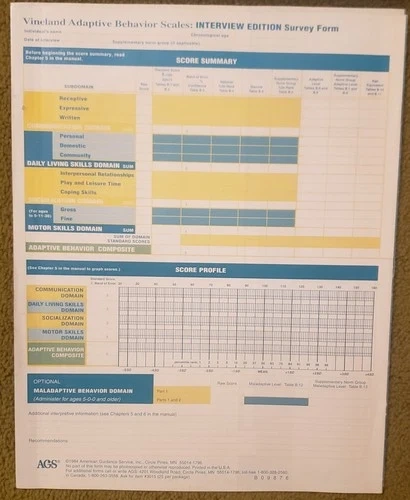 Vineland Adaptive Behavior Scales Psychology Testing Kit