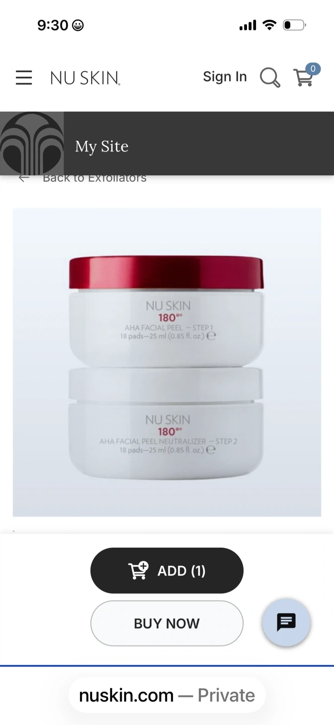 This Nu Skin 180° AHA Facial Peel + Neutralizer kit includes 18 pads each for both the peel and the neutralizer, with 30 ml (1 fl. oz.) of product for each step. It's designed to create a smoother, younger look by sweeping away the appearance of aging without aggressive clinical peels. The formula is scientifically proven and helps visibly renew skin, leaving it smoother and radiant. Retails for $88