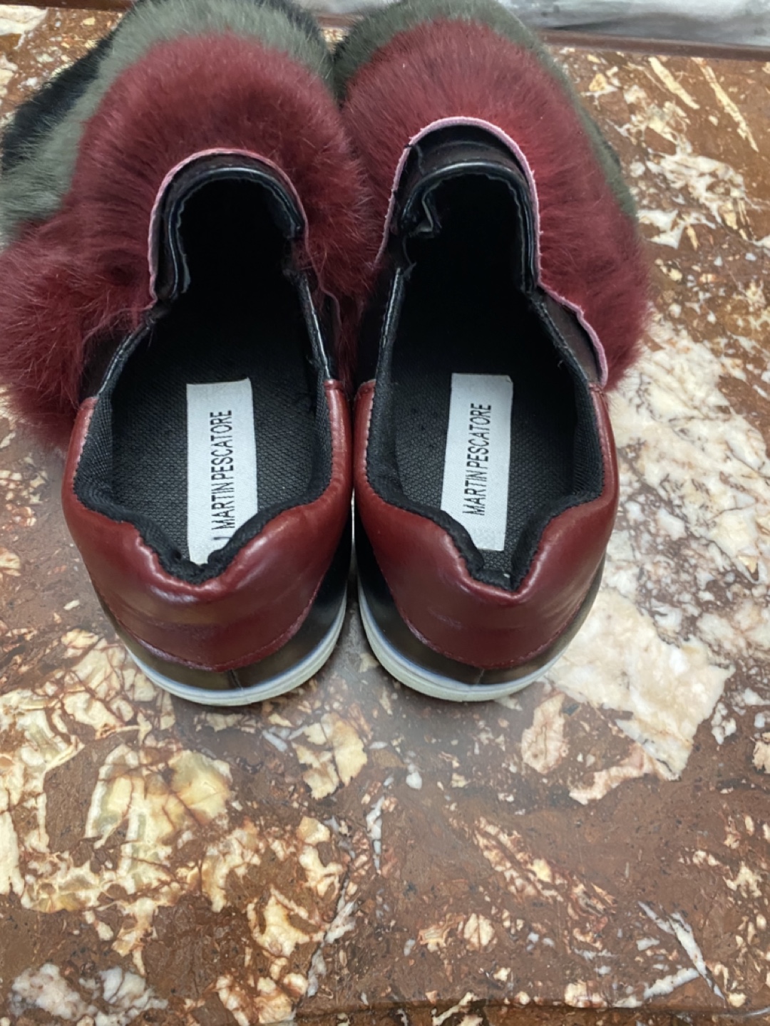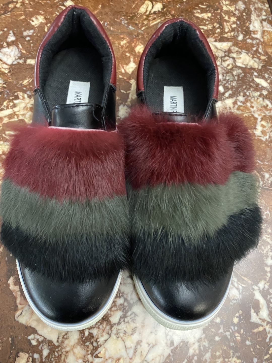 Selling a pair of Martin Pescatore loafer style sneakers with a fun fur detail! They're in good condition and are a European size 38, which fits like a 7.5. Worn once for a day as part of a celebration.