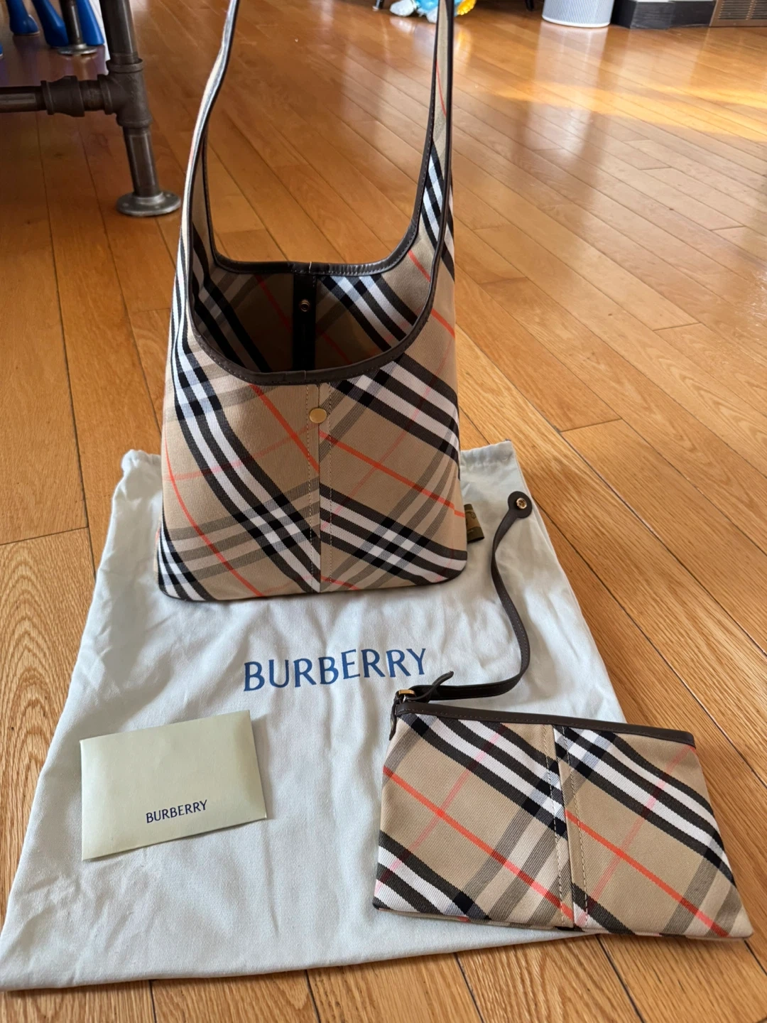 Selling a hobo shoulder bag with the iconic Check pattern. It comes with a matching pouch and dust bag. This stylish bag is perfect for everyday use!
