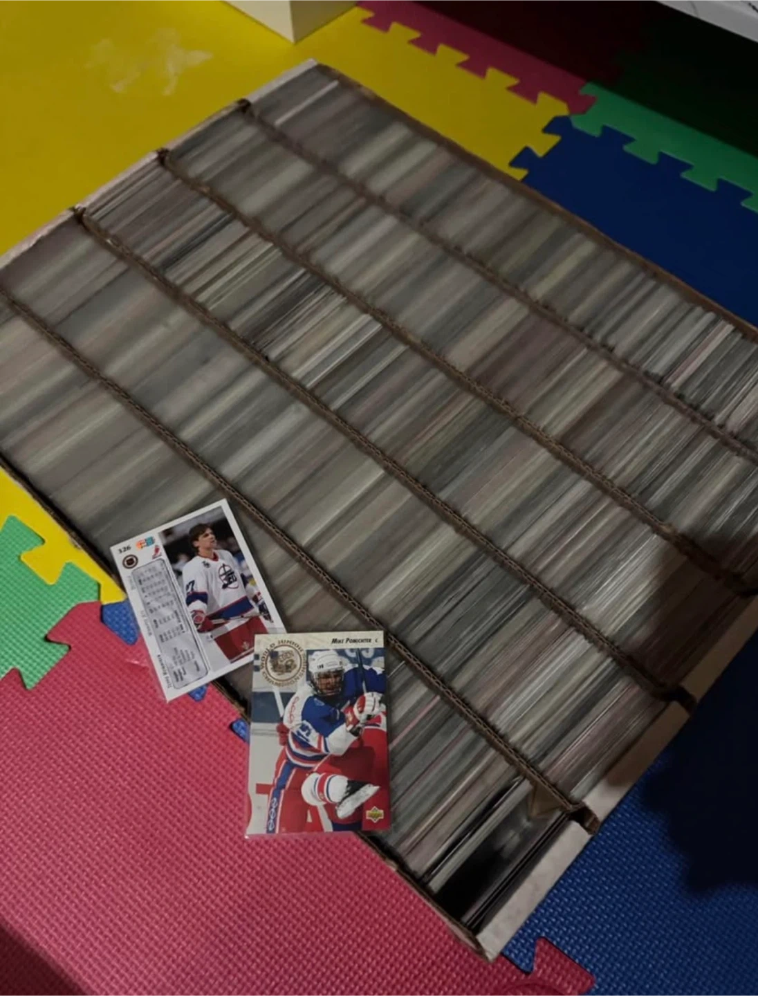 10I got this big box of hockey cards from my uncle he said he collected them and don’t really know much about them. There are thousands of cards in good condition. I haven’t gone through any of them, so there might be some good ones inside. Just want to get rid of it.
