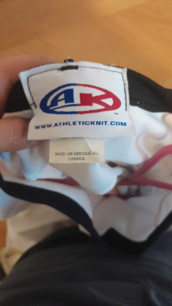 30Selling a hockey jersey that supports a great cause! It's a white jersey with the Scotiabank logo and "Hockey for Alzheimer's" on the front. The back says "VANOC Alumni 19". It has red, gold, and black stripes near the bottom and on the sleeves. A Canadian flag patch is on the shoulder too it's on like new condition three times worn barely used.