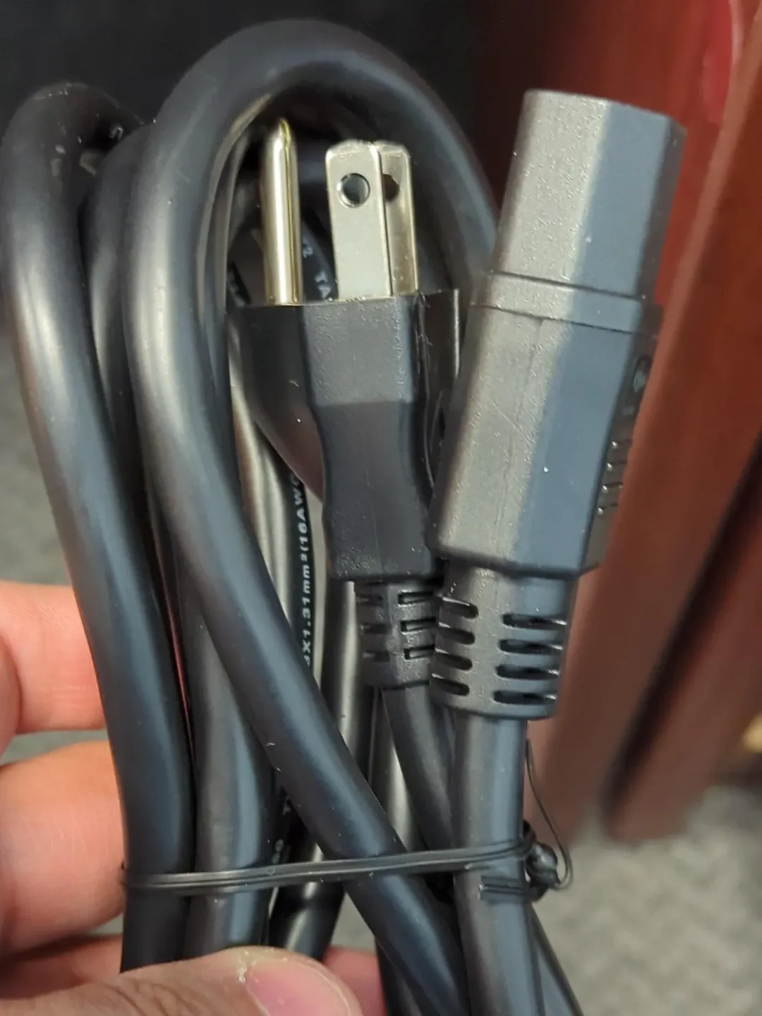 This is a standard power cord cable. It features a NEMA 5-15P plug on one end and a C13 connector on the other.