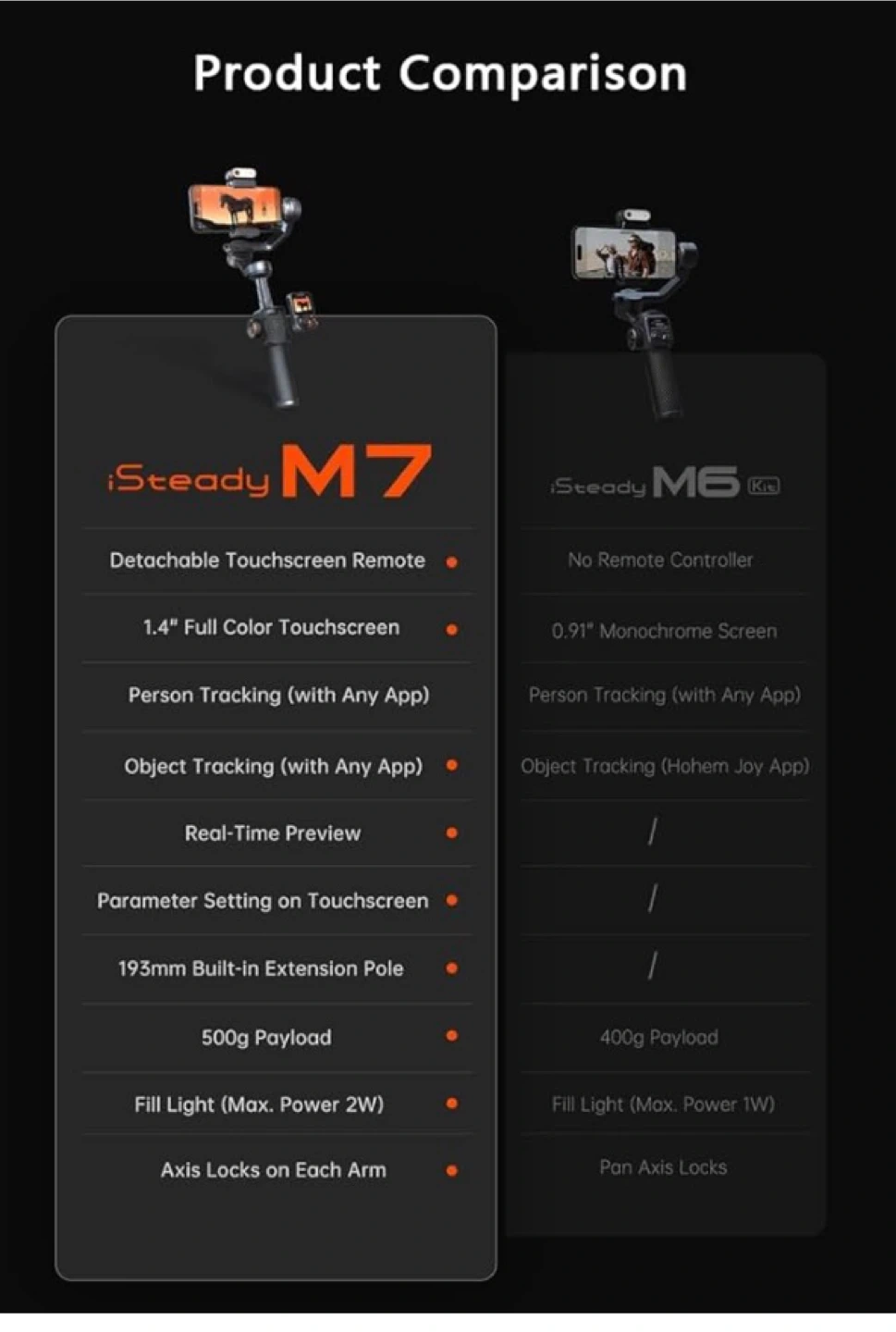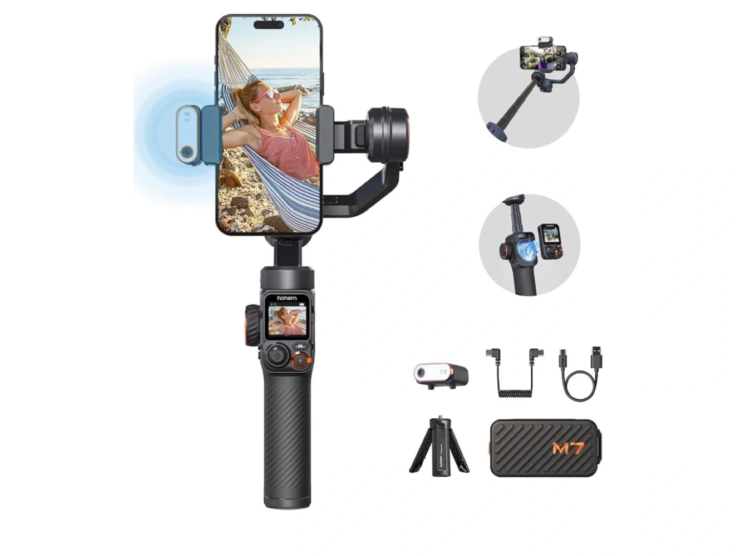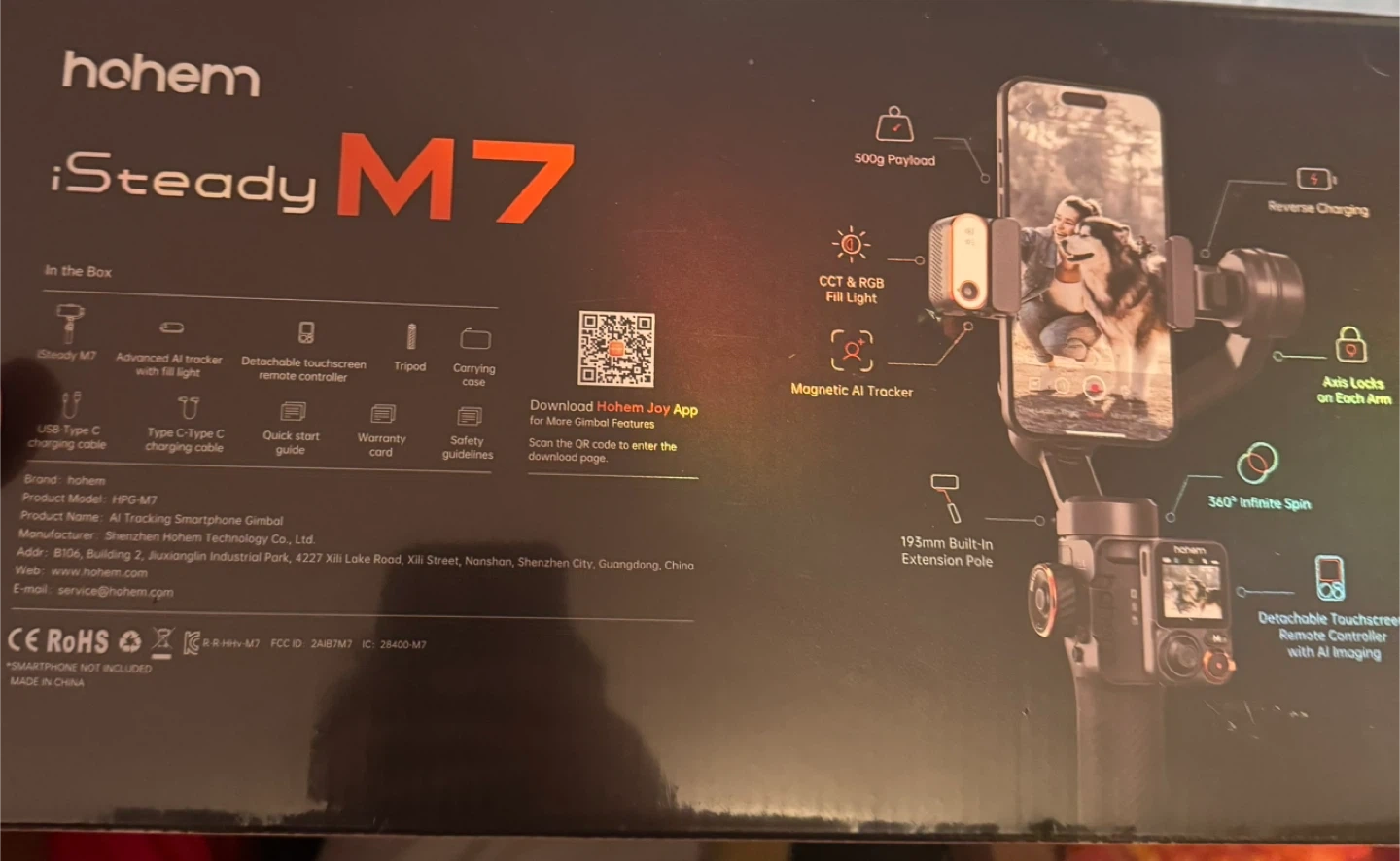 65Selling a Hohem iSteady M7 Smartphone Gimbal Stabilizer. It features a built-in extension pole for stable support and creative shots, a detachable touchscreen remote for easy control, and an upgraded 500g payload for attaching accessories. It also has an advanced magnetic AI tracker fill light. Perfect for capturing aerial shots and pet's eye views! It is completely brand new and sealed in box. Pick up at my house and cash only please. If you have a pleasant experience purchasing from me, please leave a review.