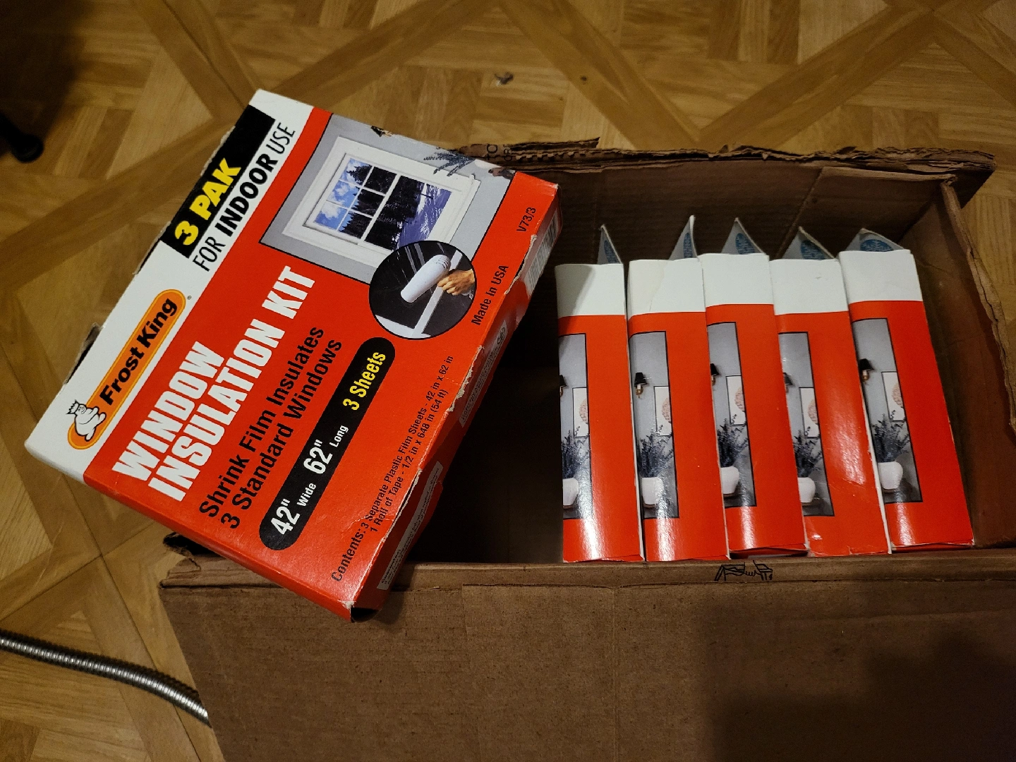 Selling a Frost King Window Insulation Kit! It's a 3-pack designed for indoor use to insulate 3 standard windows. The shrink film insulates, and each sheet is 42" wide and 62" long. It also includes a roll of tape (1/2 in x 648 in).