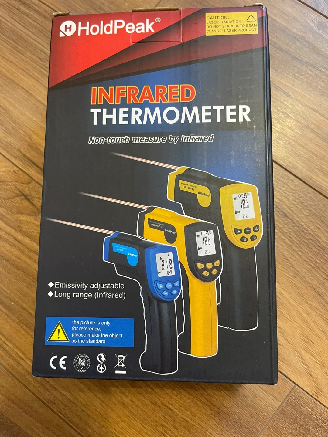 20Selling a HoldPeak Infrared Thermometer! It's a non-touch thermometer that measures by infrared. It features adjustable emissivity and a long range (infrared). The box is included!