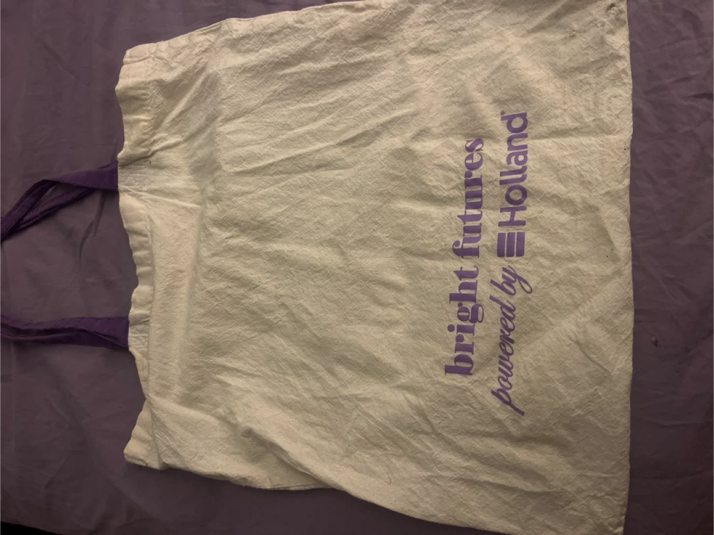 Two tote bags for sale! One says "bright futures powered by Holland" and the other says "La Femme est le futur". Both are in good condition and ready for a new home