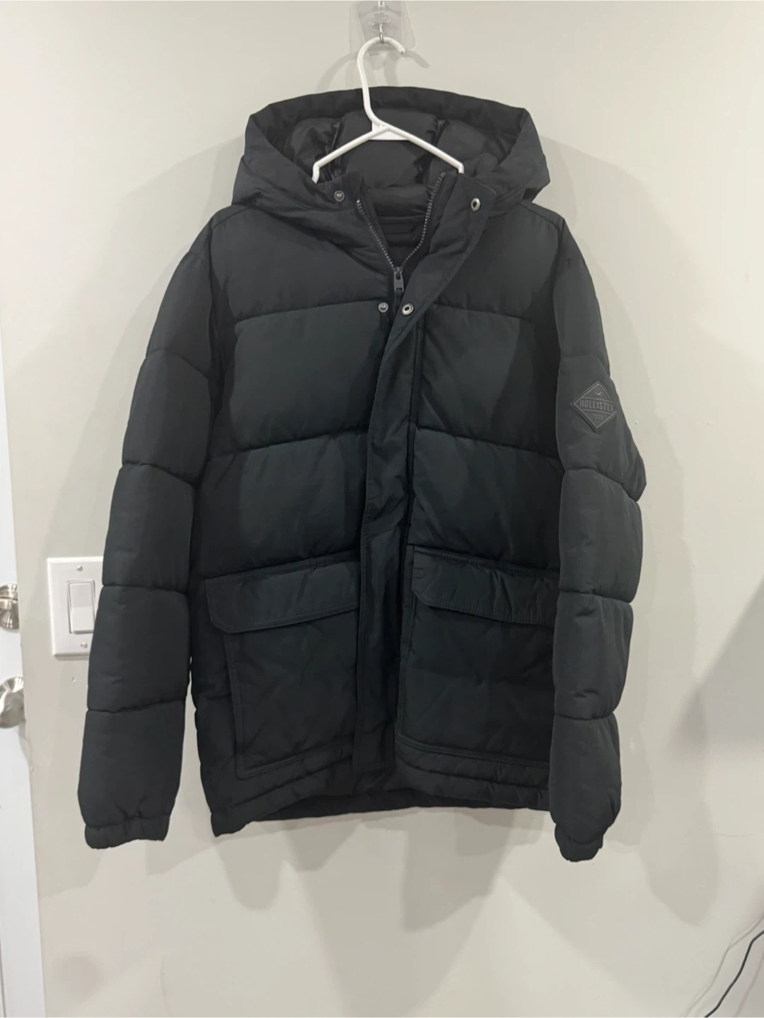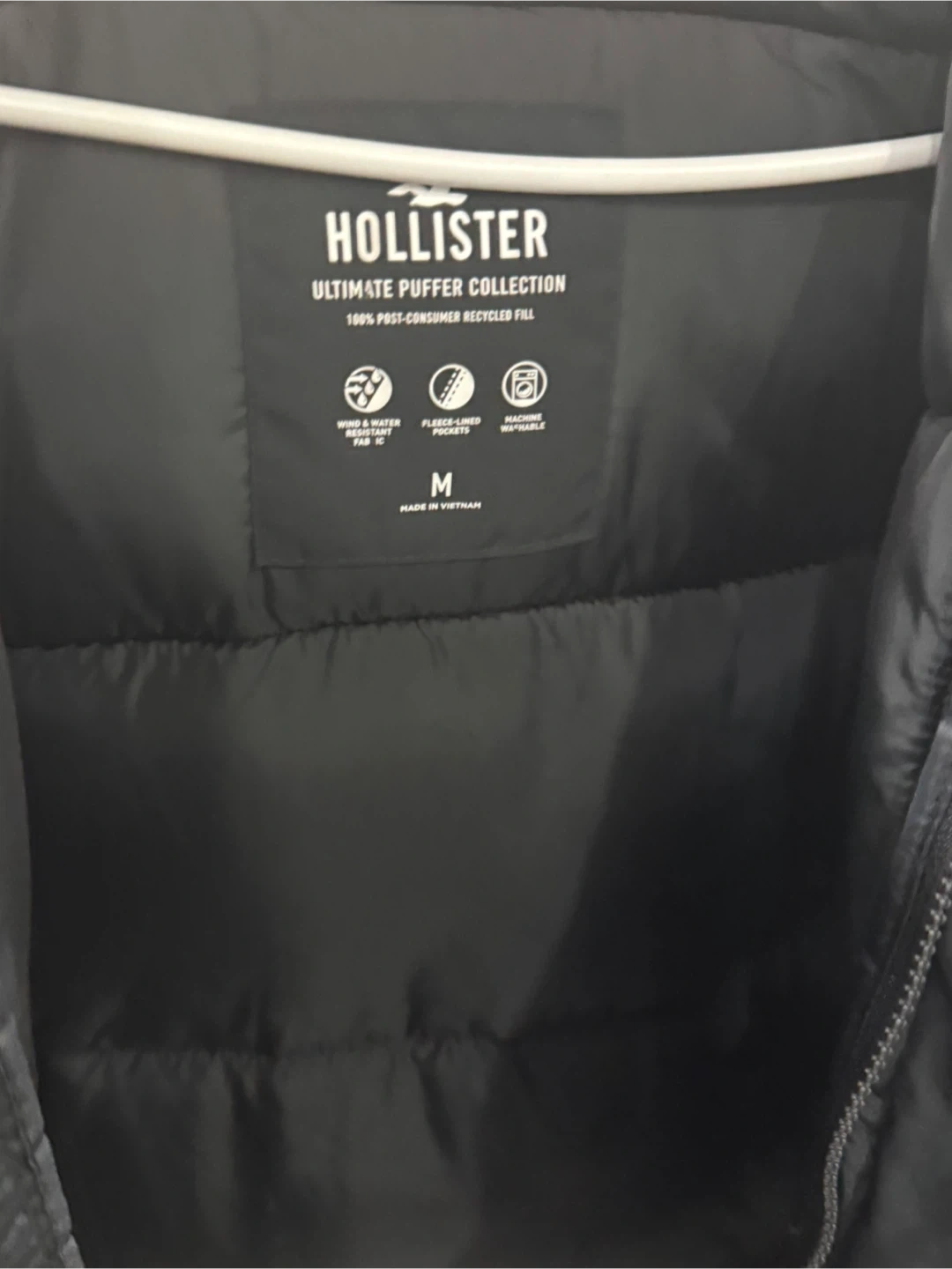 36Selling a Hollister Ultimate Puffer Collection jacket in size medium! It's black and made with 100% post-consumer recycled fill. It's designed to be wind and water resistant, and the pockets are fleece-lined for extra warmth. Plus, it's machine washable for easy care