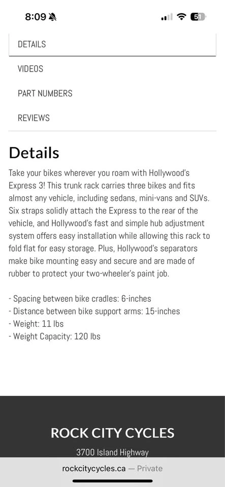 10Take your bikes wherever you roam with Hollywood's Express 3! This trunk rack carries three bikes and fits almost any car. Six straps solidly attach the Express to the rear of the vehicle, and Hollywood's fast and simple hub adjustment system offers easy installation while allowing this rack to fold flat for easy storage.