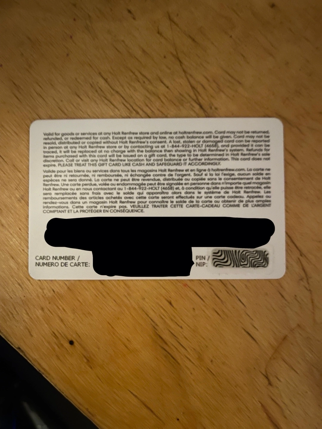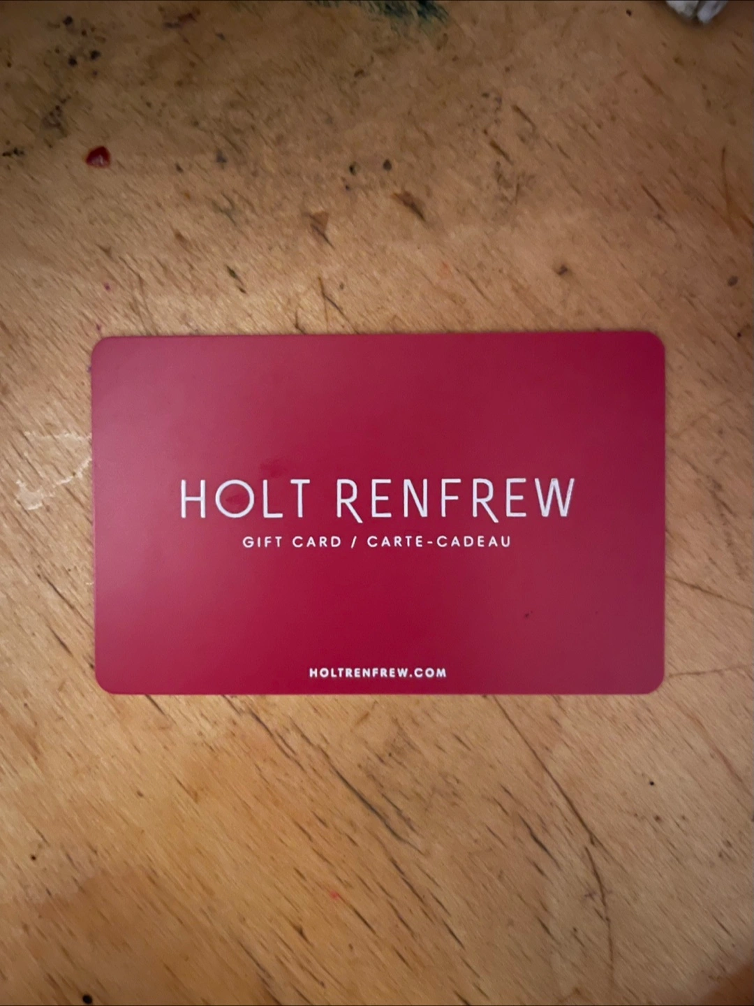 Unused Holt Renfrew gift card. Valid online and in-store. $500 Balance, selling in $470. Meeting in DT area.