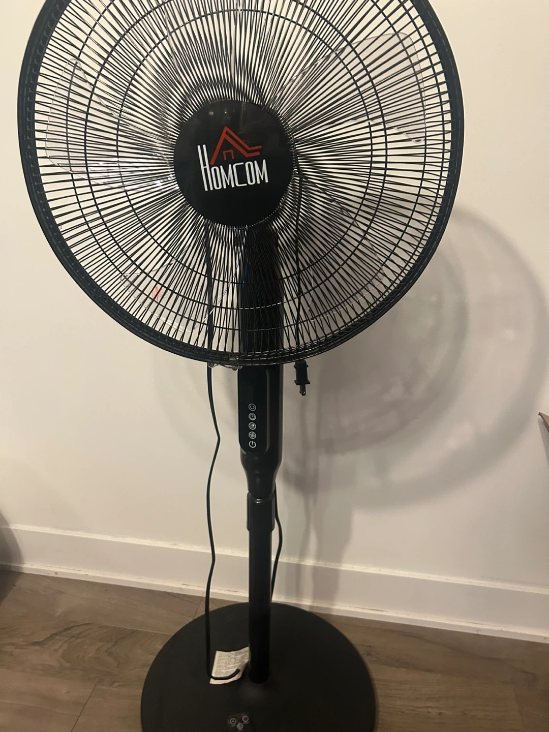 Selling a HOMCOM black electric stand fan. It's in great condition and has remote control