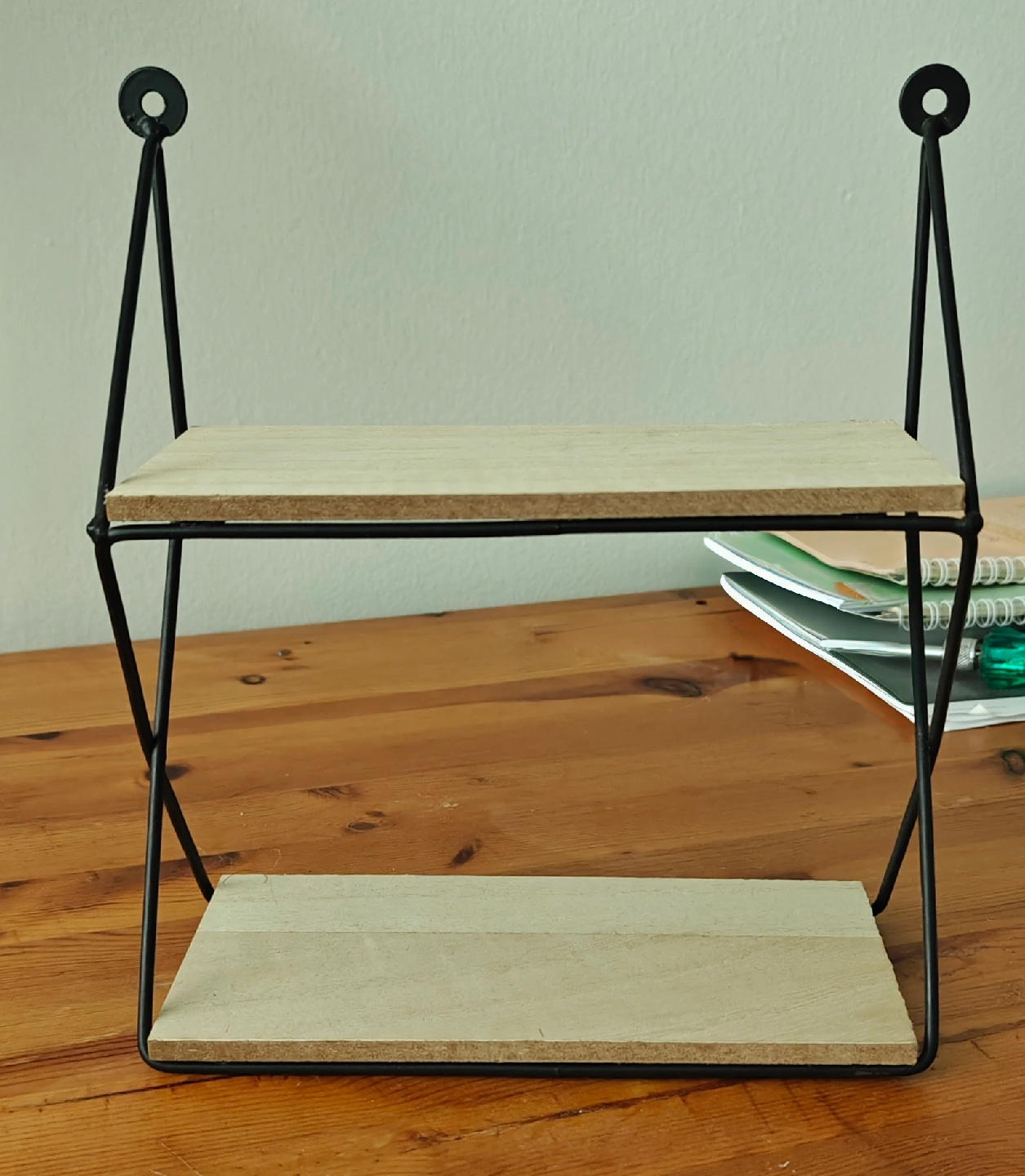 12Selling a Home Deco wall shelf! It features a black metal frame and wooden shelves. It's in great shape and would look great in any room. 10 CAD for 5 pieces