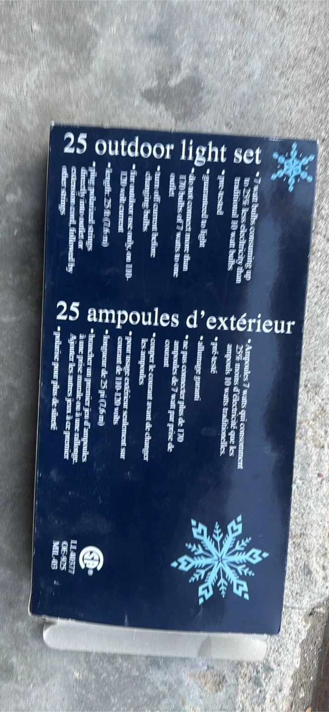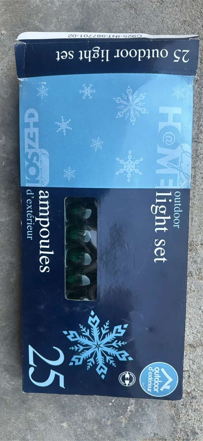 10Selling a brand new Home Hozsted 25 outdoor light set! Perfect for adding a festive touch to your outdoor space. The box includes 25 bulbs designed for outdoor use.
