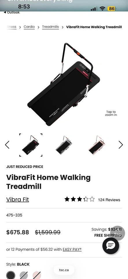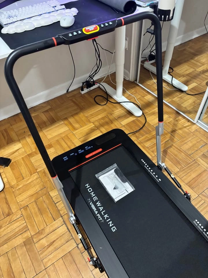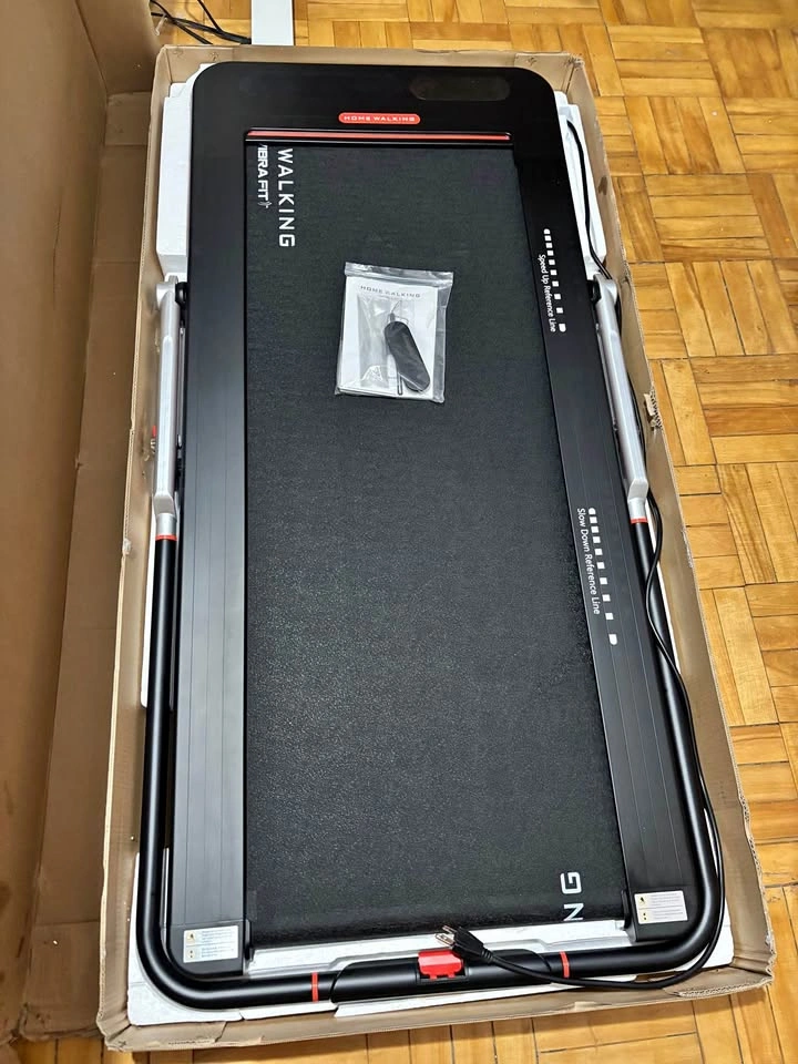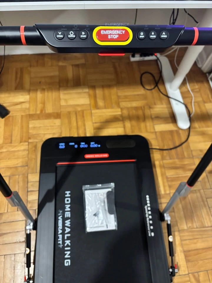 51Available as long as the listing is up. Barely used - Like New Pick up location is Jane and Wilson Cosmetic defect: Crack (See picture) This walking machine from VibraFit combines fitness, entertainment and safety, and features a sturdy and durable ultra-space-saving frame which allows you to enjoy your walking experience in the comfort of your own home. This walking machine features a high-strength aluminum alloy body, a patented automatic speed control (up to 8 kilometres an hour), and mechanical button controls including an emergency stop button and self-adaptive speed adjustment. It also has a smart hand rail and Bluetooth speakers. Weight capacity: high-strength aluminum body alloy supports up to 250 lbs Dimensions: 56.30" x 28.93" x 40.55" (folded), 58.07" x 28.93" x 3.66" (unfolded) What is included: • Home Walking Treadmill • User Manual • Silicone Oil • Remote Control • L-Shaped Hex Wrench