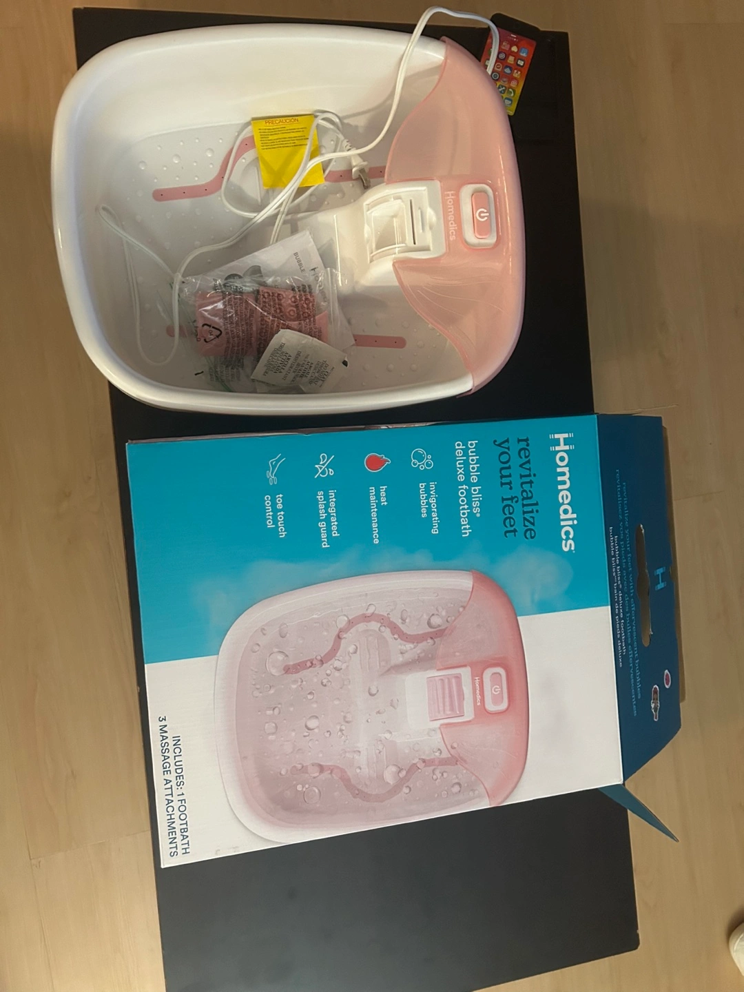 10Selling a Homedics Bubble Bliss Deluxe Footbath! It's in great condition and comes with 3 massage attachments. The footbath features toe-touch control, integrated splash guard, heat maintenance, and invigorating bubbles. Comes with the original box and instruction manual too Can be delivered in downtown/whitehorn