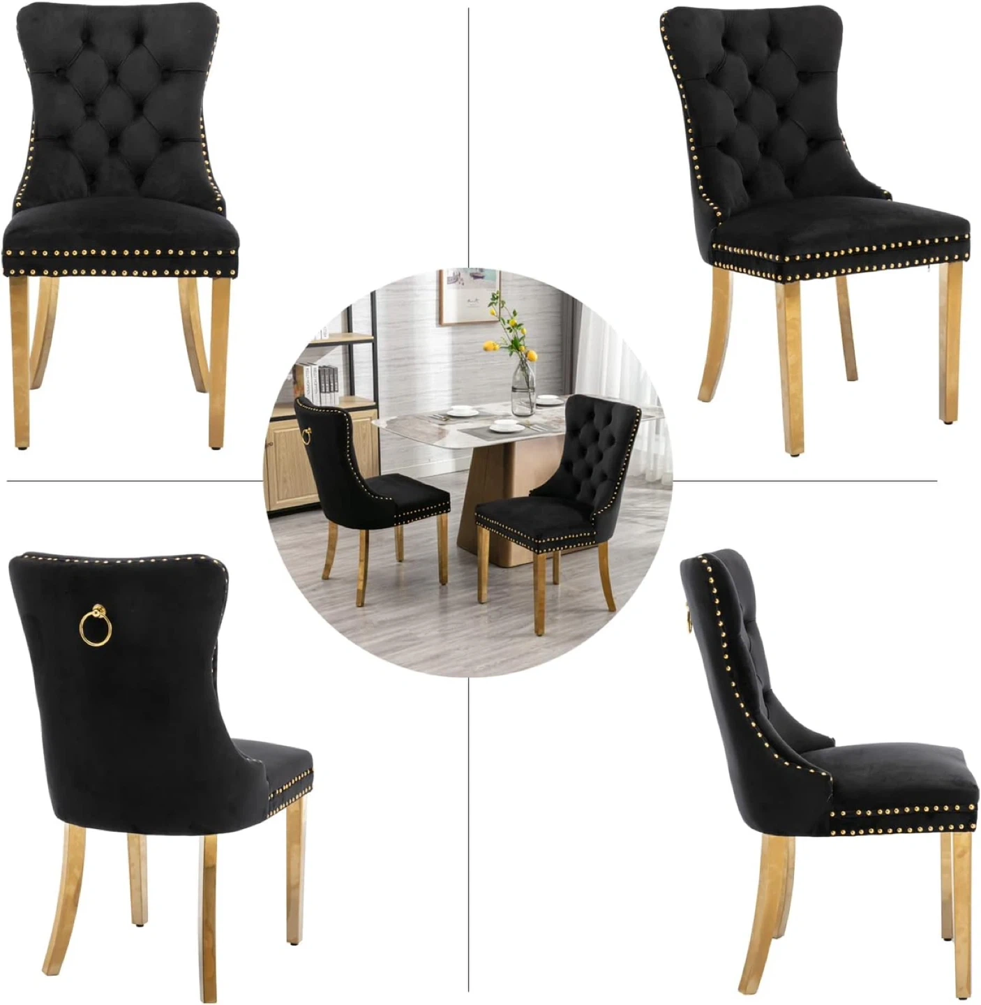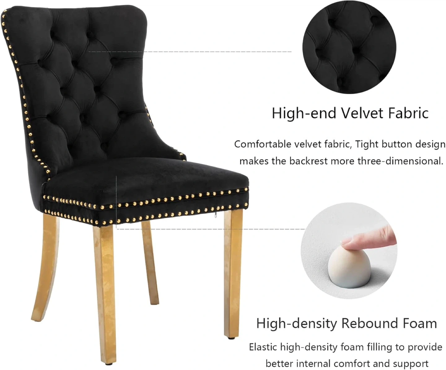 【High-end Velvet Fabric】:This dinning chairs are upholstered with high-quality velvet fabric that is soft and comfortable to sit on, the fabric is super to wear resistance and will not fade. The cushion very easy to clean, just need a towel to wipe gently
