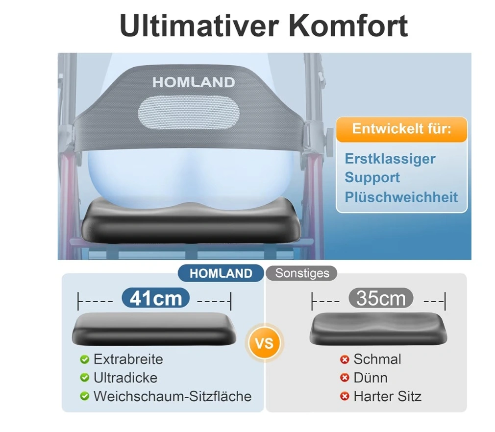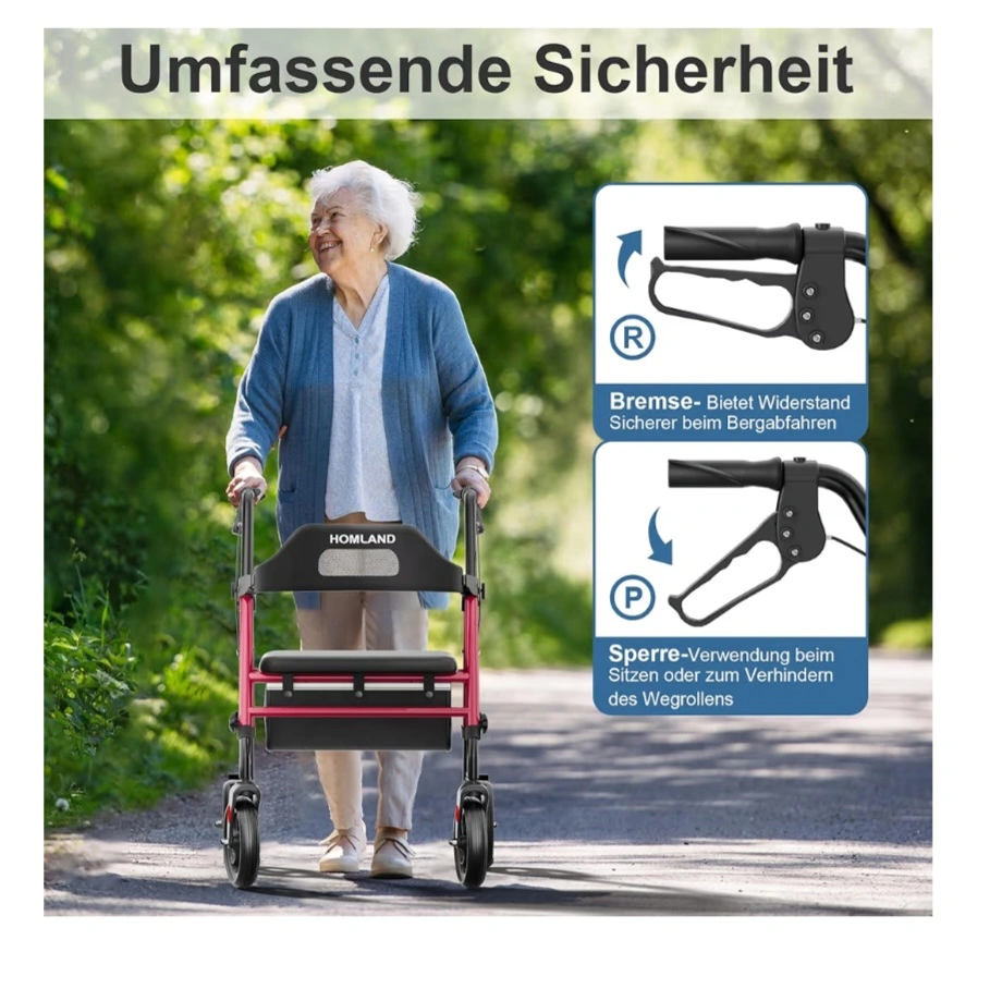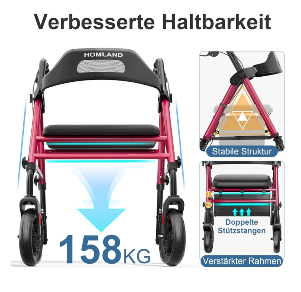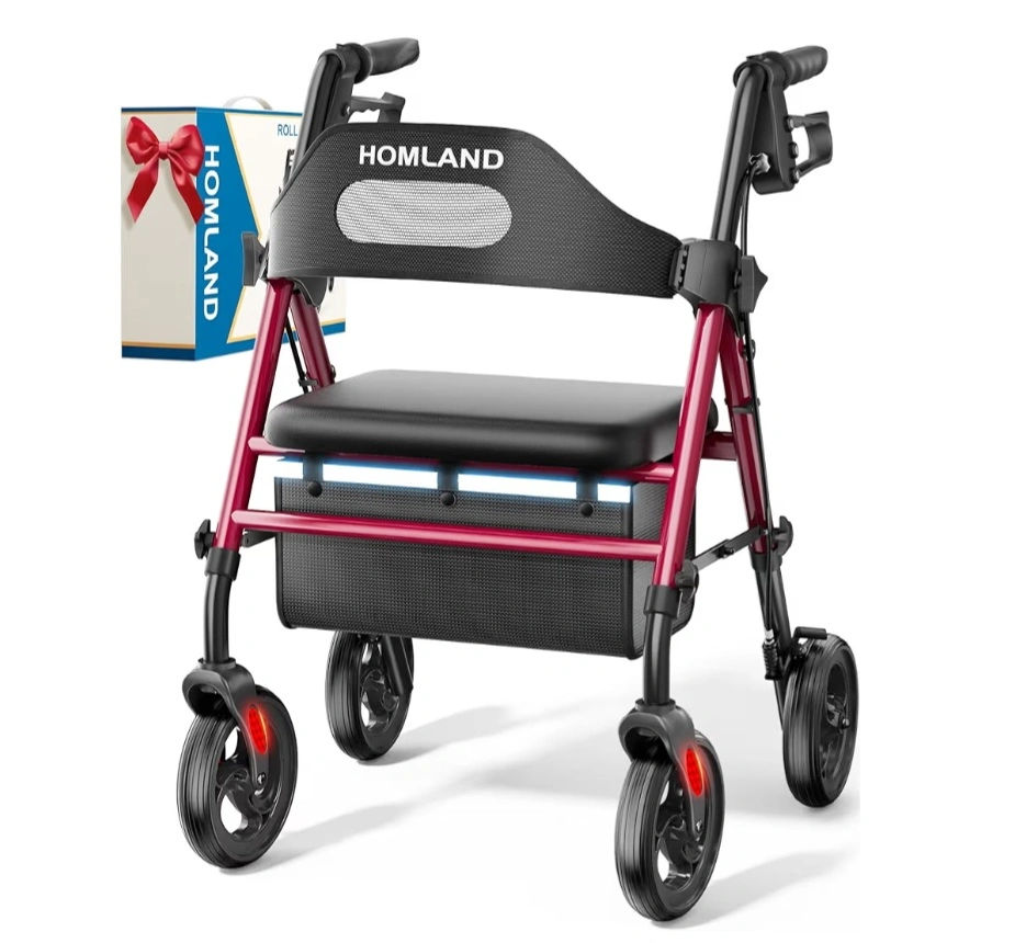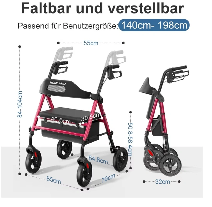 Foldable Rollator Walkers with Seat for Seniors, 8'' Big Wheels, 350 lb. Weight Capacity, Adjustable Handles and Seat Height, Lightweight Rolling Walker, Red brand New