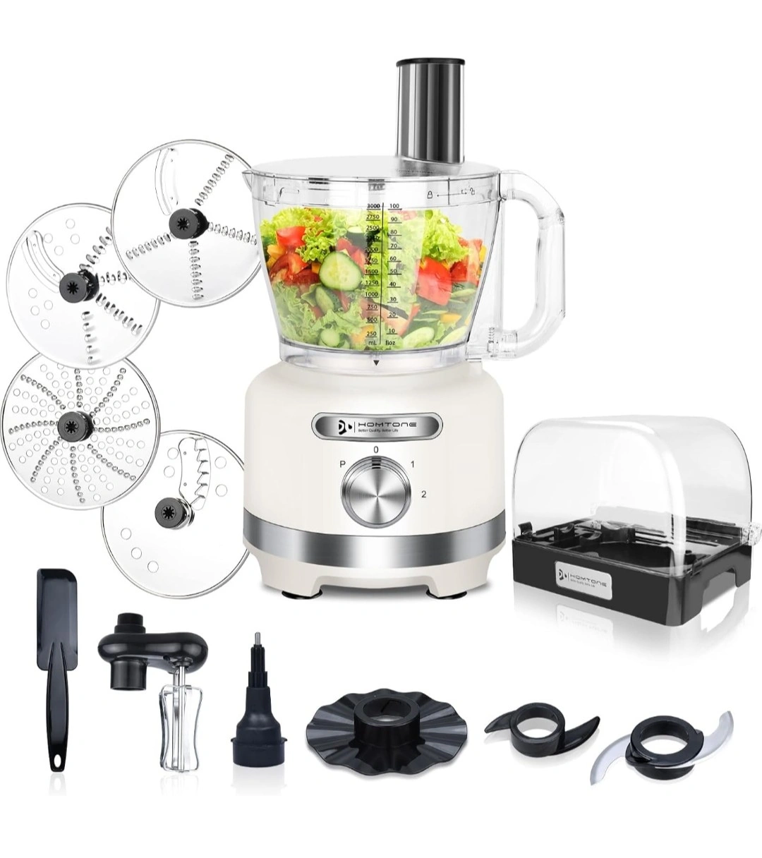229This HOMTONE food processor is an all-in-one solution to simplify your meal prep! It has a 16 cup capacity, large enough for the whole family. It's also a 10-in-1 multi-function device and includes a space-saving storage box. It's BPA free and made of food-grade material, plus it's dishwasher safe! It also has a 3" wide feed chute, so you can fit whole foods for easy processing and less pre-cutting