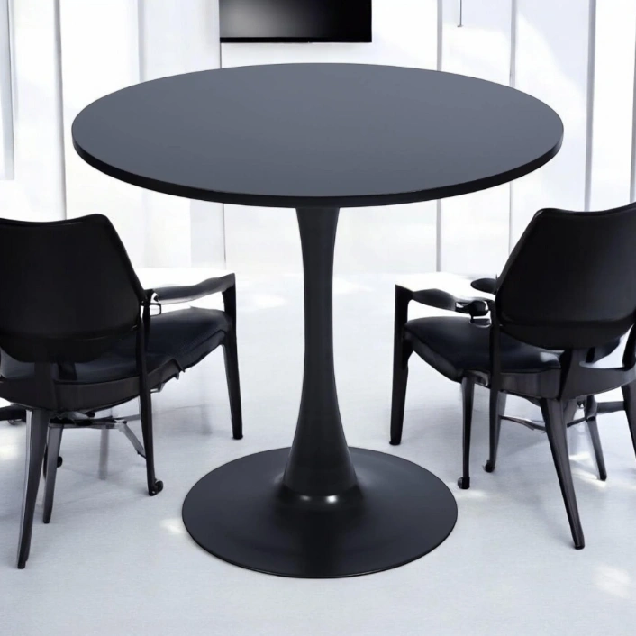 Homy Casa Black Round Boardroom Table, Modern Minimalist Design,Metal Pedestal, Home and Office Use Used like new. Return Item Few small damage as shown in pictures Minimalist Design: Elevate your space with our modern dining table, combining style with functionality. Durable Metal Construction: Crafted from high-quality metal, ensuring long-lasting durability and stability. Compact Dimensions: Measuring 31.50" x 31.50" x 28.74", perfect for small spaces while providing ample table surface. Ideal for Multiple Uses: Perfect for dining areas, offices, or small apartments; complements any modern décor. Easy to Maintain: Scratch-resistant finish ensures your table stays looking new; easy to clean surface makes maintenance a breeze.