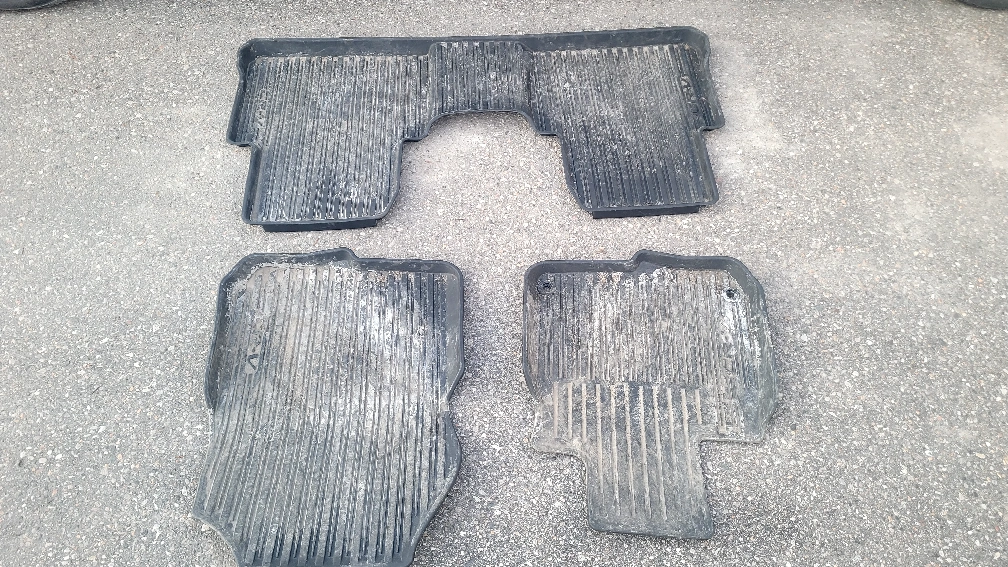 Set of four used floor mats and one cargo liner(2021 honda crv). Black rubber. Show some wear. need to wash