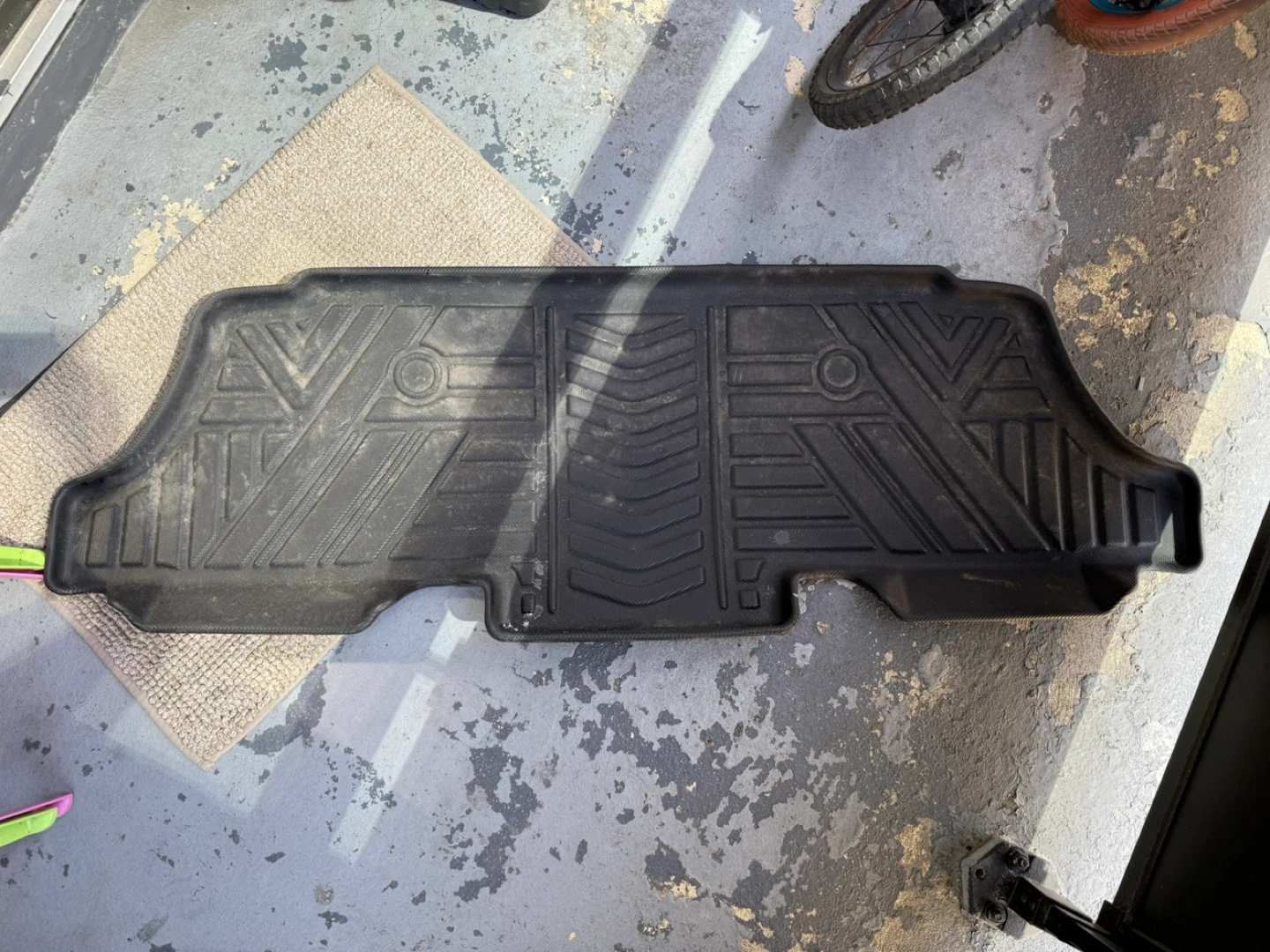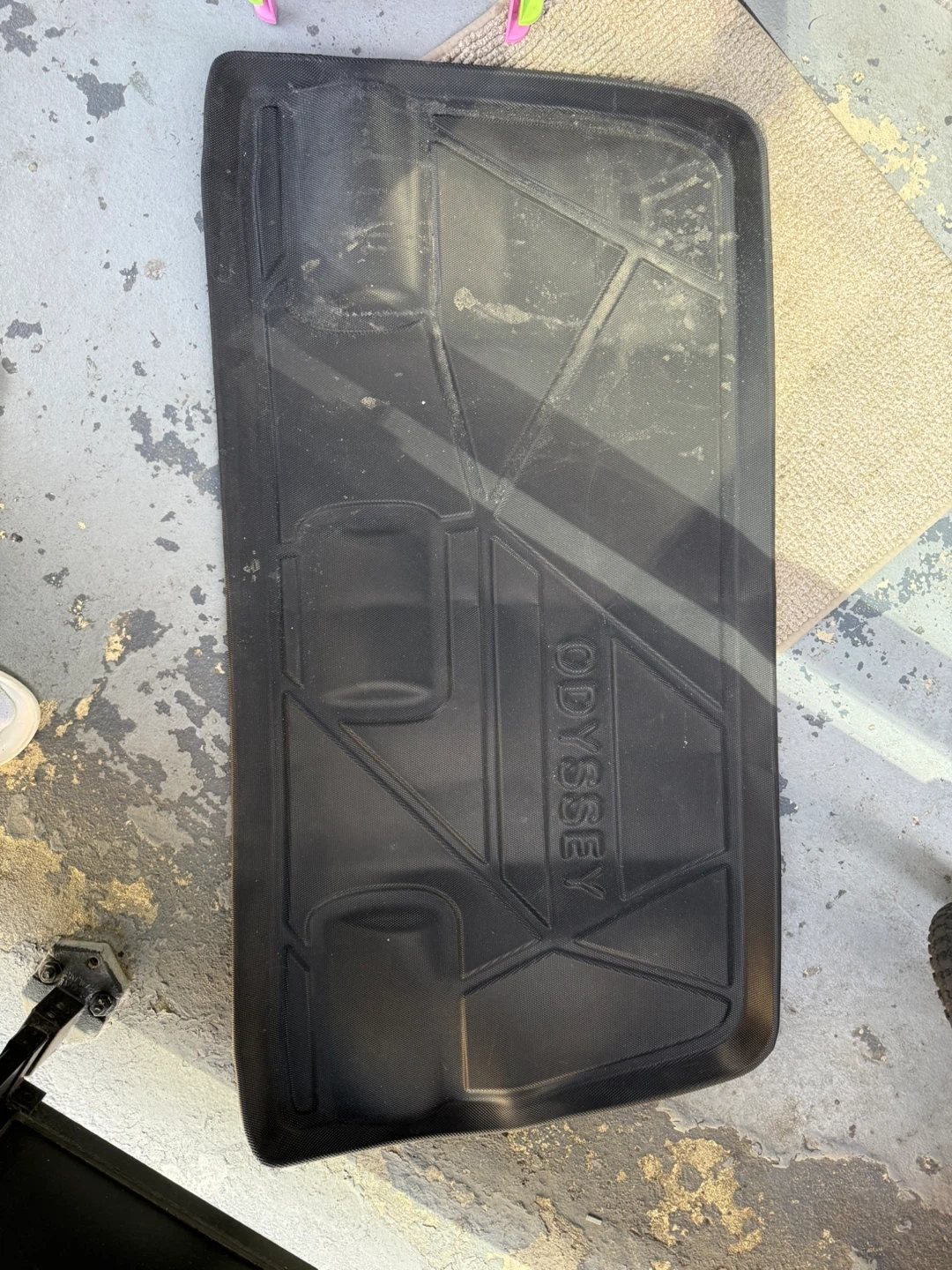 Selling a used black cargo liner for a Honda Odyssey. It's a custom fit and designed to protect your vehicle's cargo area from spills, dirt, and wear and tear. It's in good condition and ready to use!
