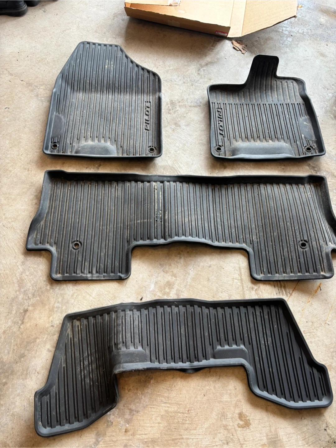 60Selling a set of all-weather floor mats for a Honda Pilot. These mats are designed to protect your vehicle's interior from dirt, mud, and snow. They are durable and easy to clean, making them perfect for Canadian weather!