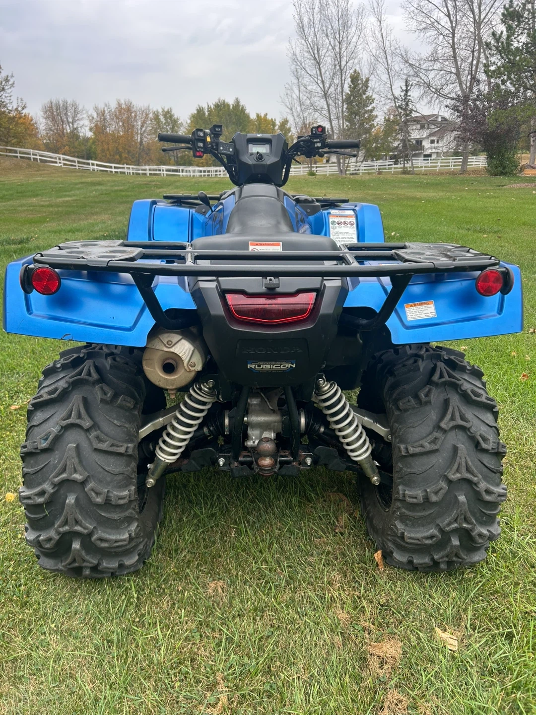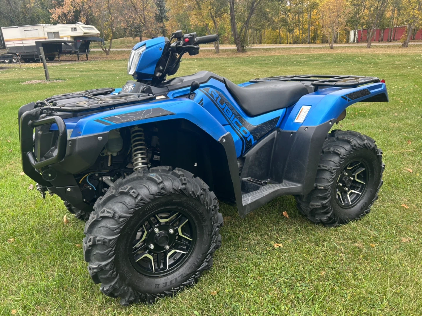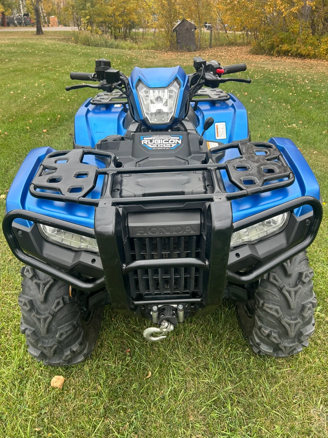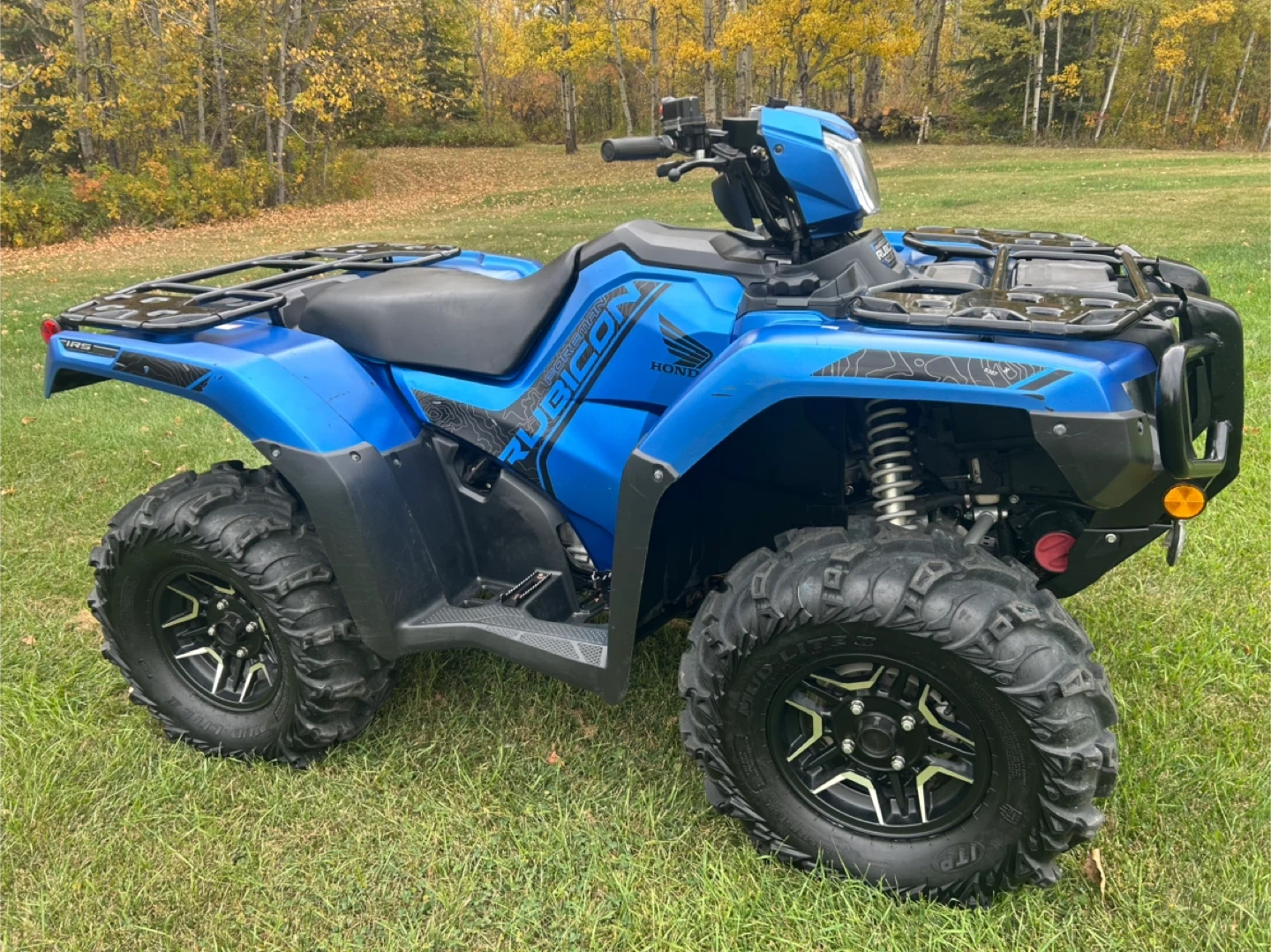 02022 Honda Rubicon Deluxe 520 5412 kms, High Low range 5 speed DCT (dual clutch transmission), auto/elec. manual shift mode, power steering, 4 wheel lock mode, Additional Options: 3500lb warn winch OEM Honda hand & thumb warmers with 5 settings Upgraded tires: (approx 1year old) Front: 27x9x12 ITP Mud Lite ll Rear: 27x11x12 ITP Mud Lite ll Power charge cord ( for charging your battery. Just plug and charge) 12V 10A (120W) charge receptacle It always been stored in a heated shop Oil has been changed and only has 100 km on fresh oil, wheel bearings have been checked and are tight. This Quad needs nothing and is ready to go.
