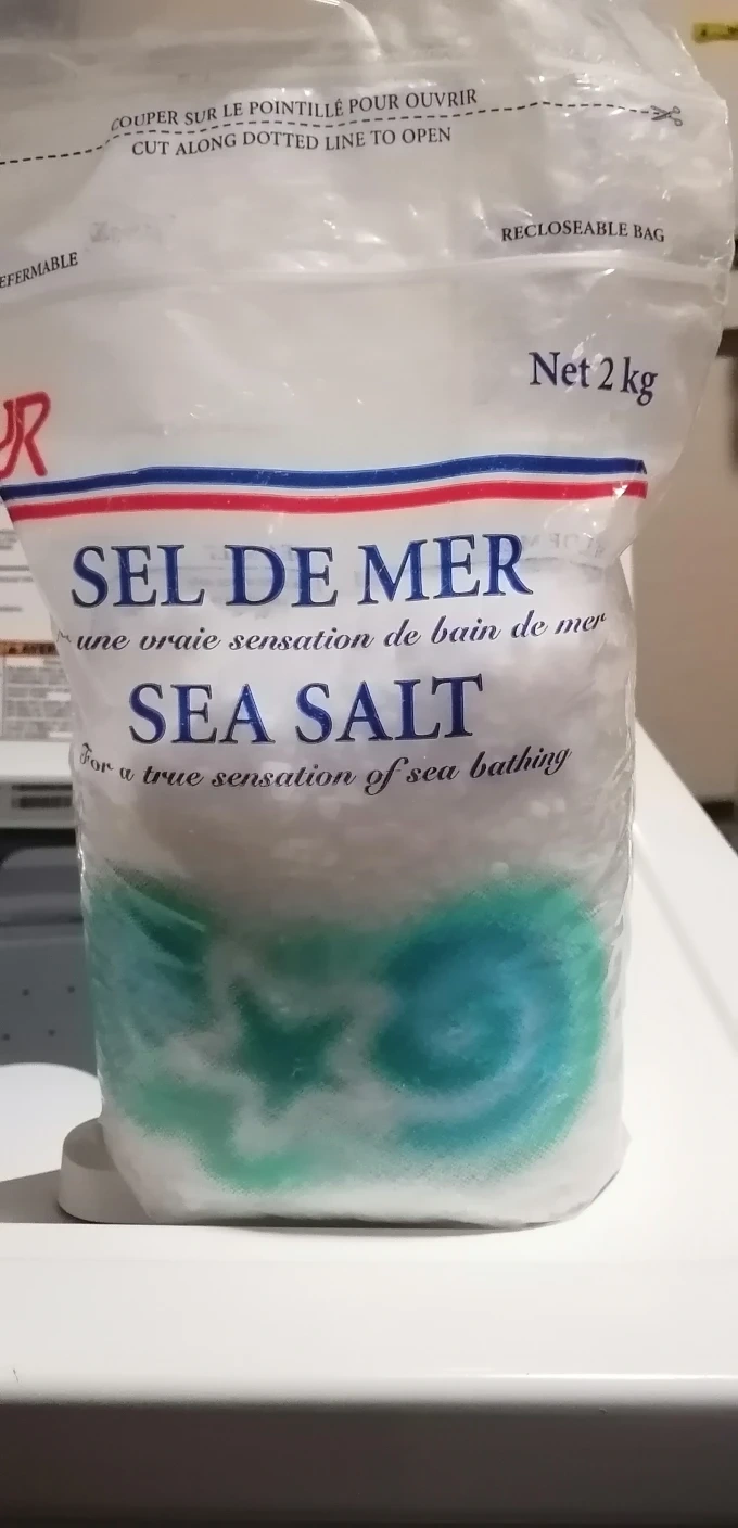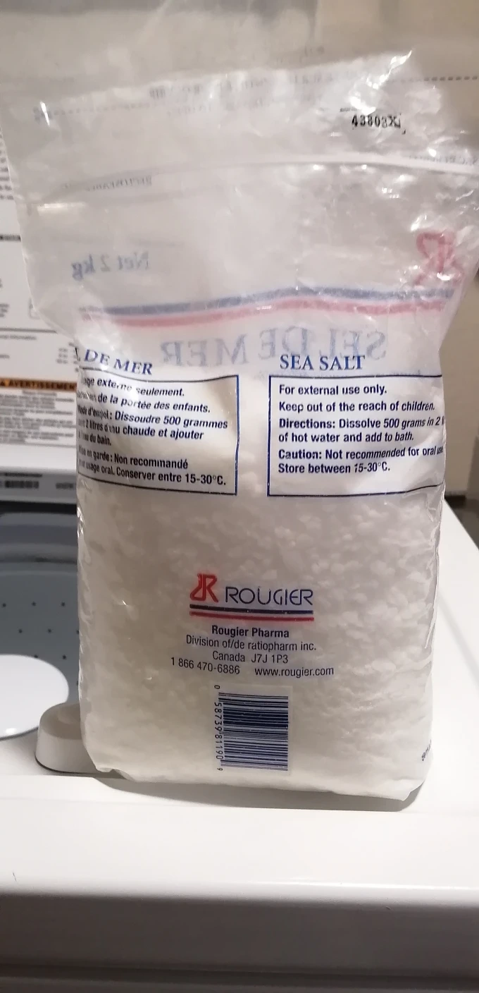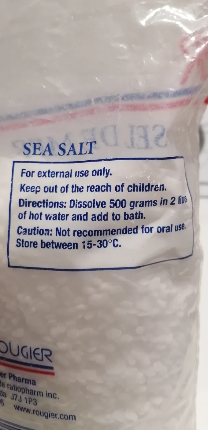Sea salt for external use only. Dissolve 500 grams in 2 litres of hot water and add to bath.