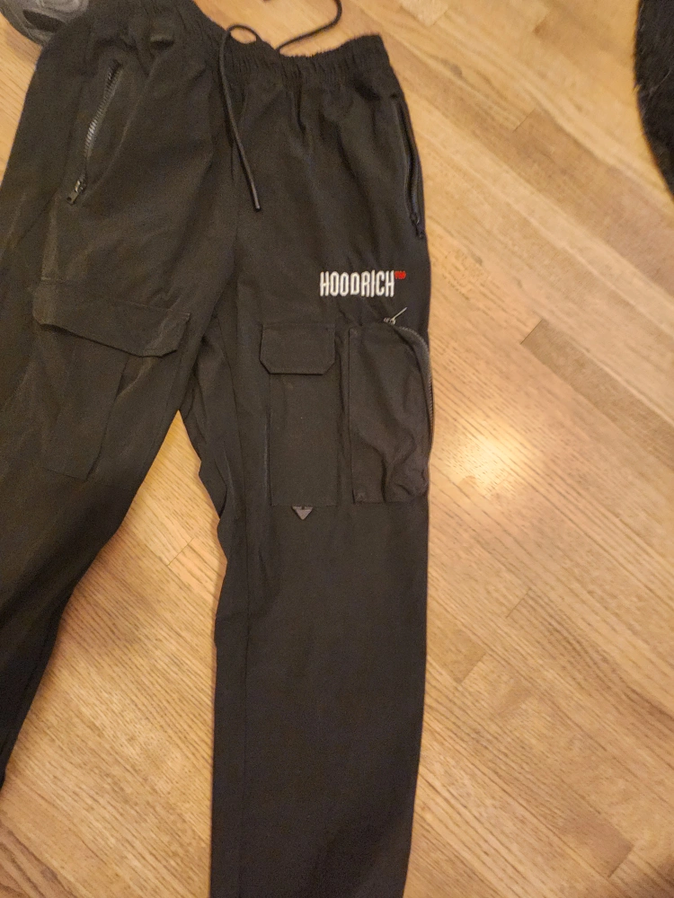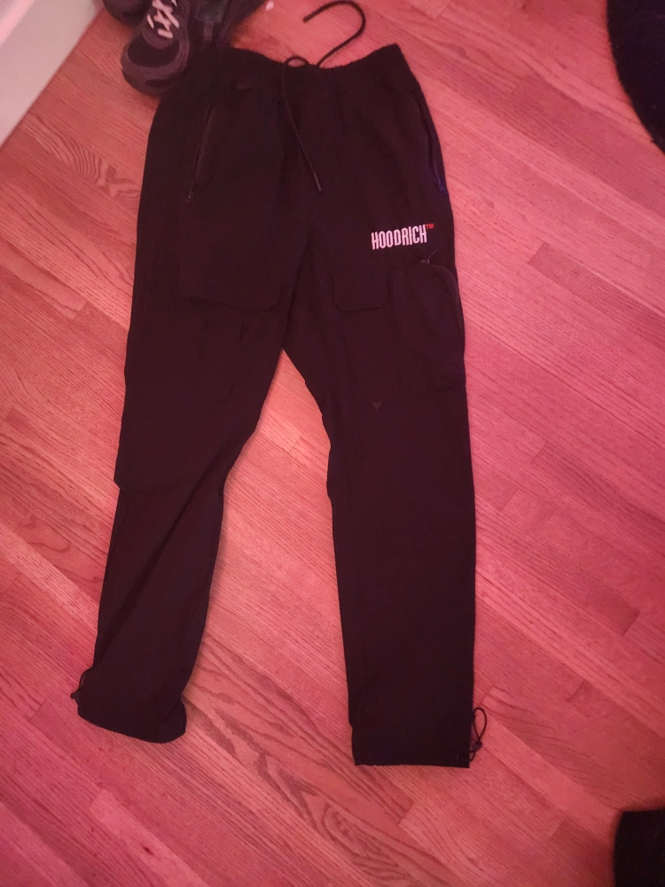 10Selling a pair of Hoodrich black cargo pants! They're in great condition and ready for a new home. Perfect for everyday wear or hitting the streets, these pants combine style and functionality. They feature a comfortable fit and plenty of pocket space