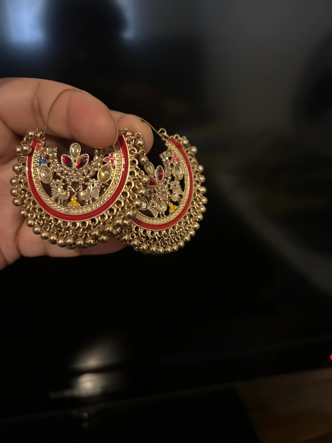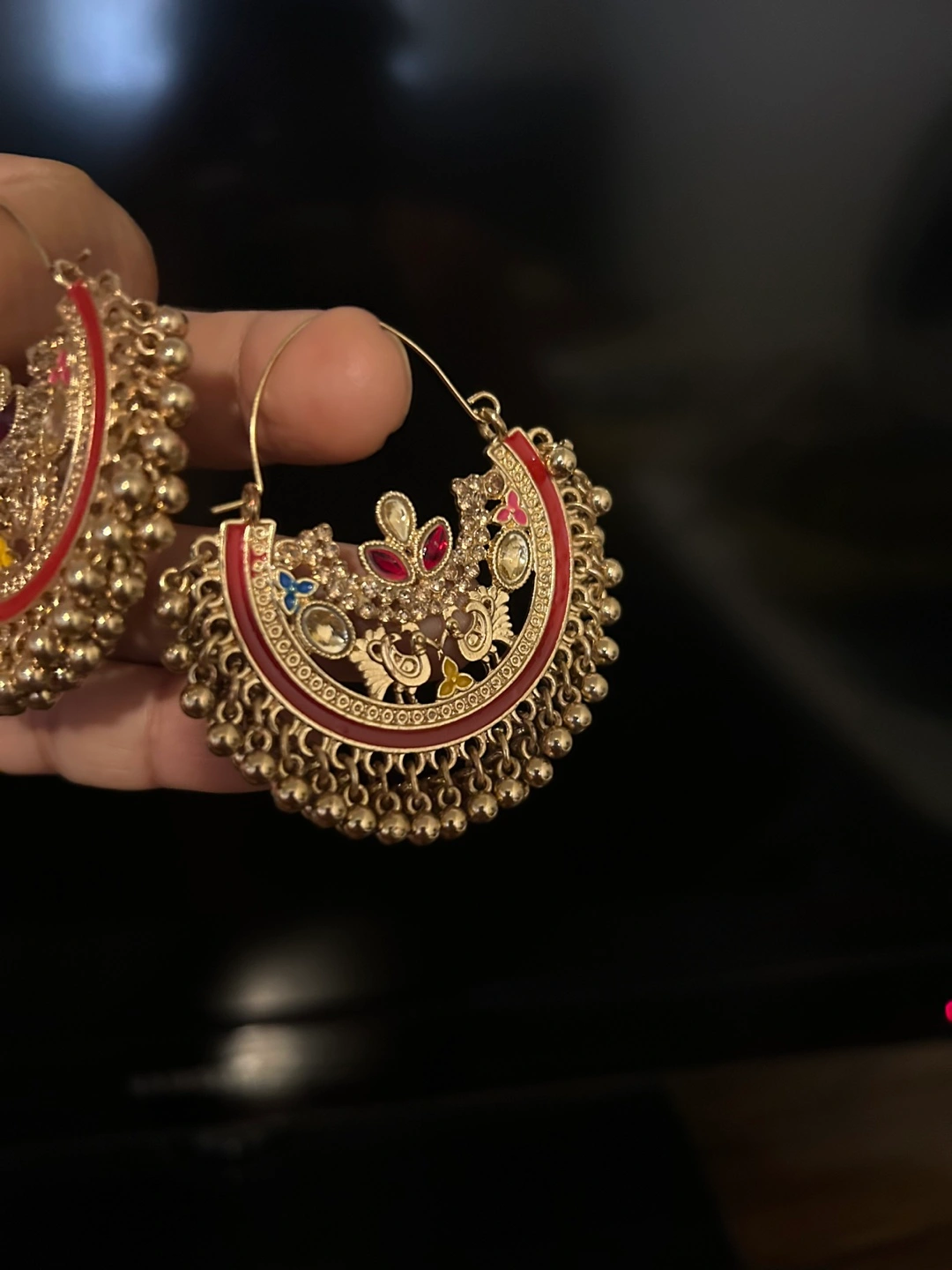 Beautiful hoop earrings with intricate detailing and colourful accents! They're in great condition and ready to add a touch of elegance to your style