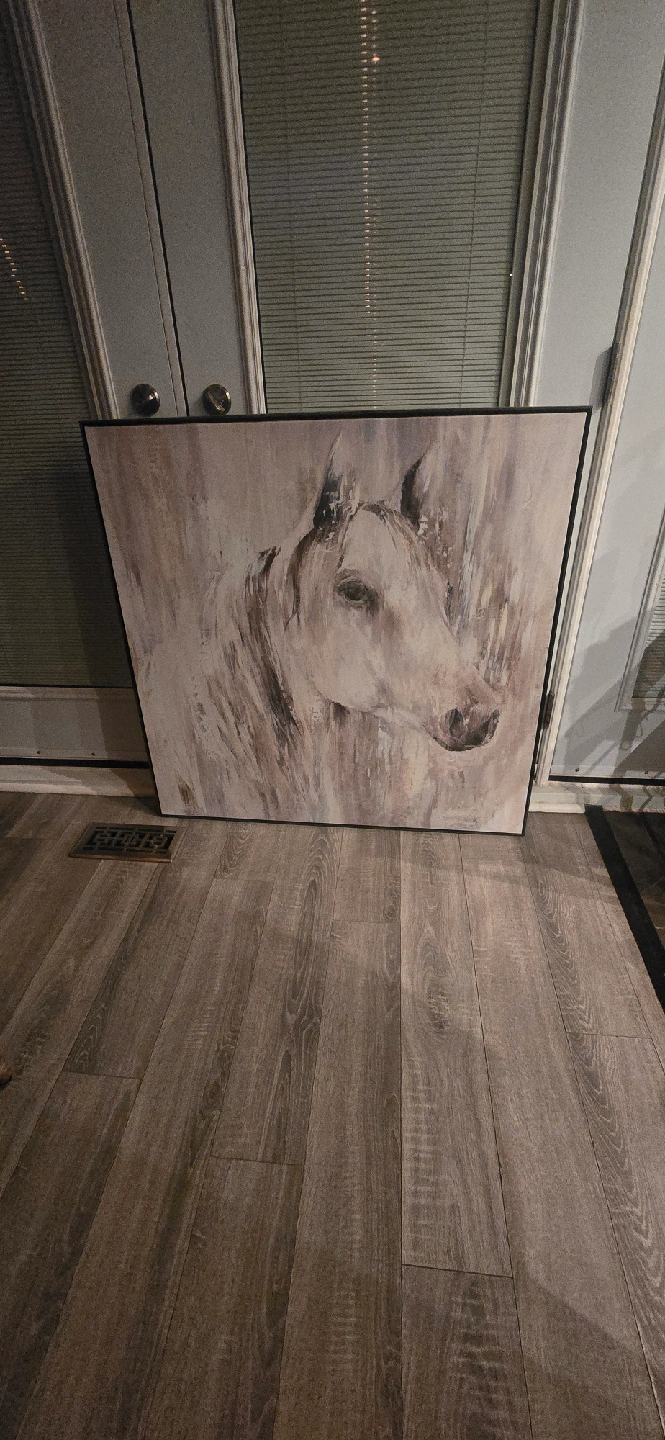 A beautiful horse painting for your wall! This piece of art will look great in any room of your home. The painting is in excellent condition. Size 41x41