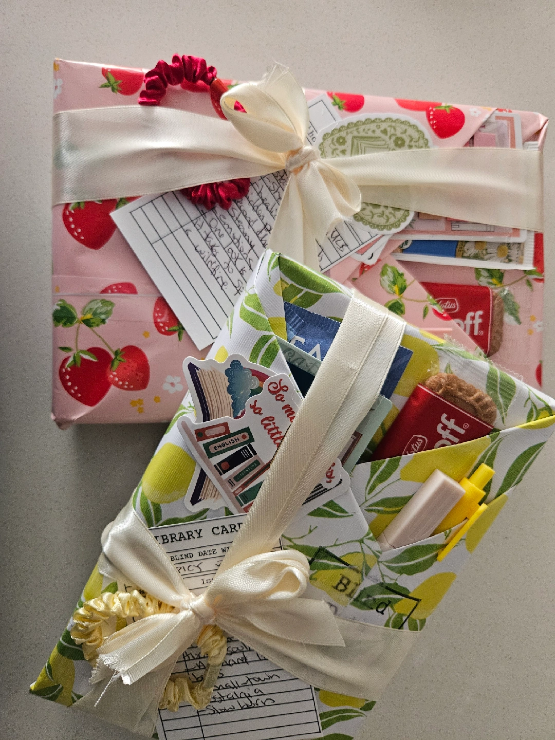5Blind Date with a Book. These wrapped gifts from Hot Reads Sweet Treats are the ultimate destination for book lovers! Each package is carefully curated with items like books, sweet treats, and fun accessories. Perfect for a special surprise or treating yourself. see our Instagram @hotreadsandsweettreats