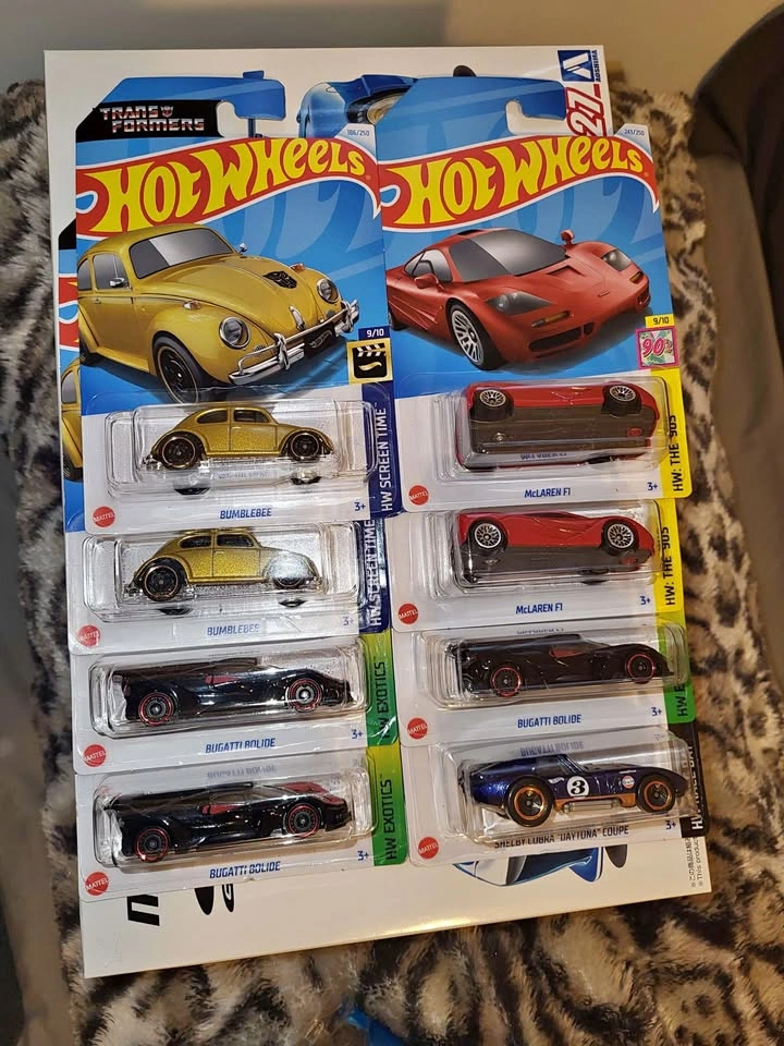 15Whole set $32 $8 for 2 - 2 hot wheels bumble bee - 3 bugatti bolide - 2 mclaren f1 - 1 shelby cobra daytona Also open to trades for other hard to find cars (mainly f1 atm)