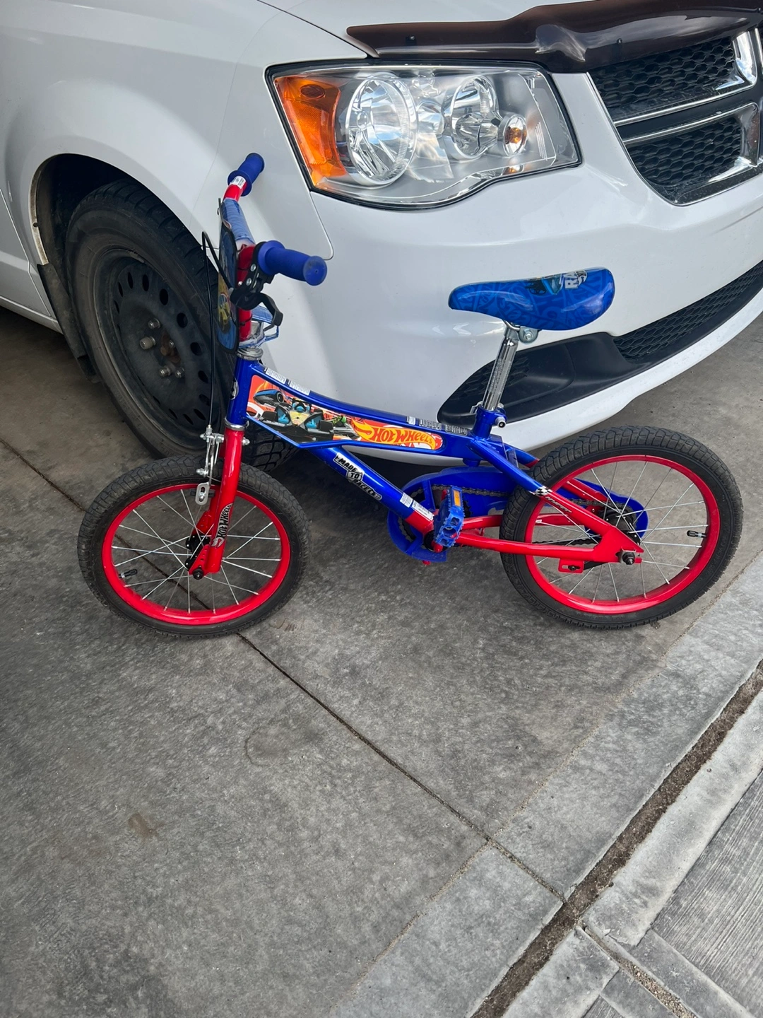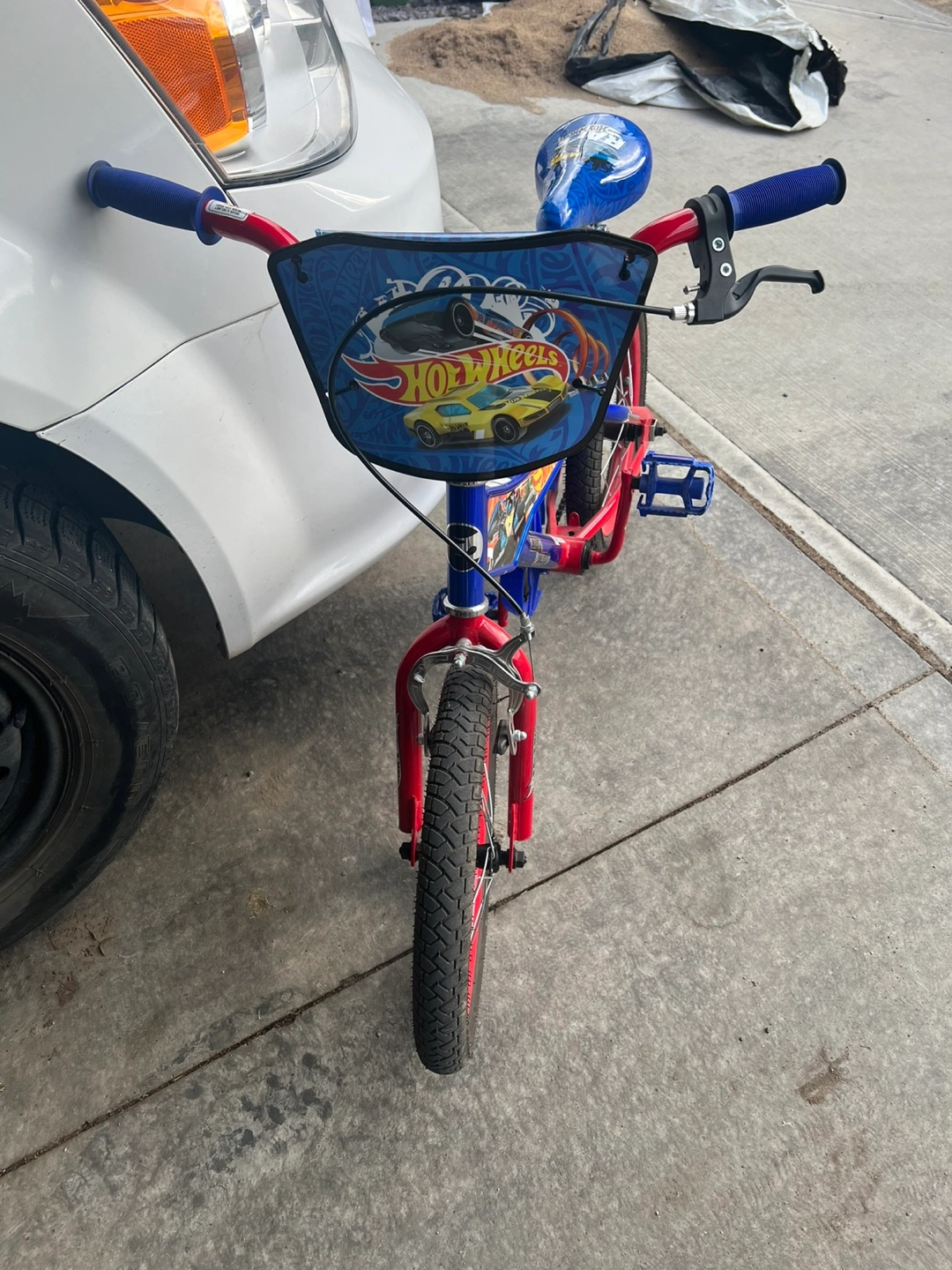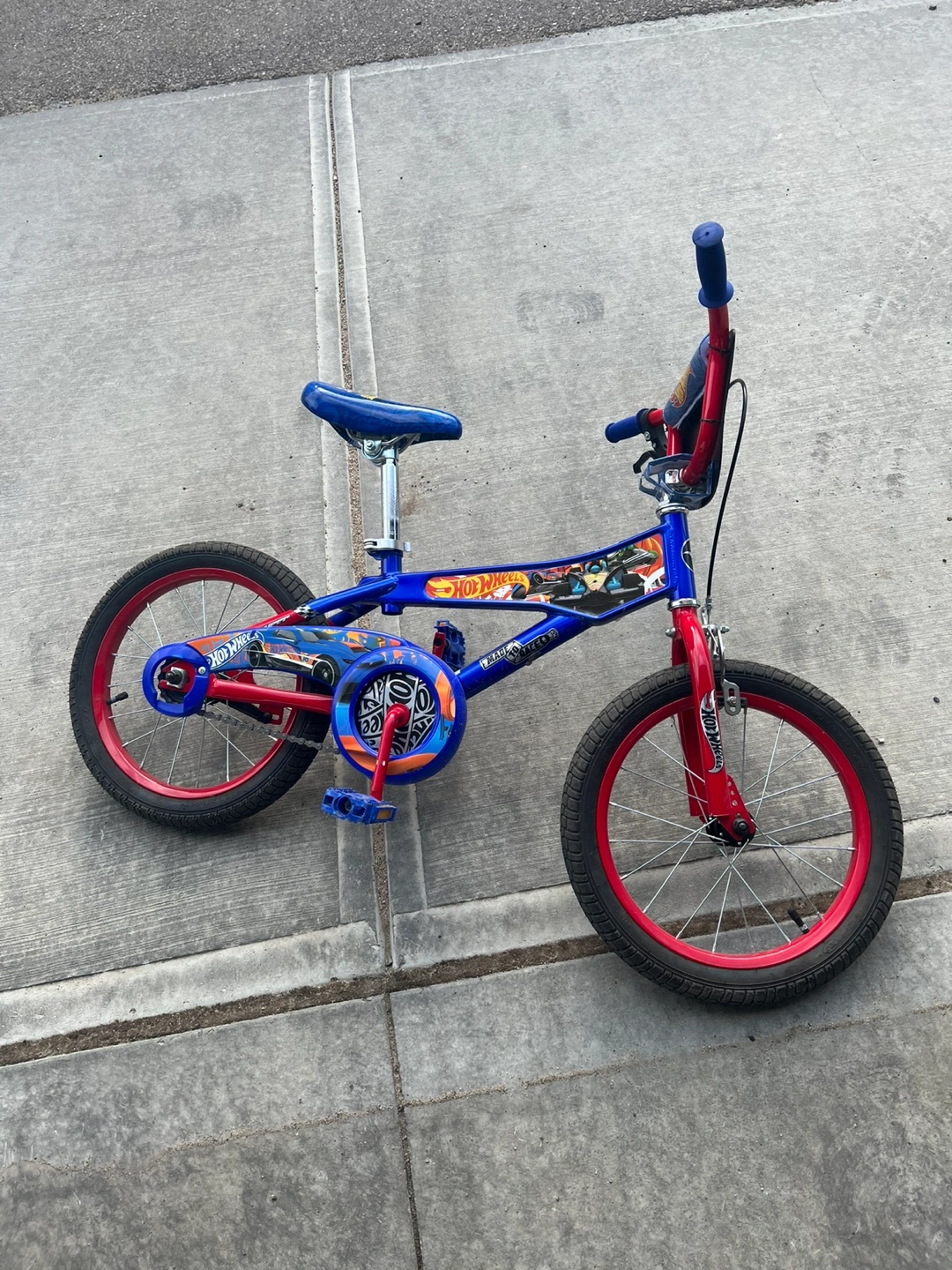 Selling a Hot Wheels 16-inch bike for kids! It's in great condition and ready for a new rider. The bike features a vibrant blue and red colour scheme with Hot Wheels graphics. Perfect for young fans of Hot Wheels! If needed a training wheels I can provide but a bit worn out. can check if you want it