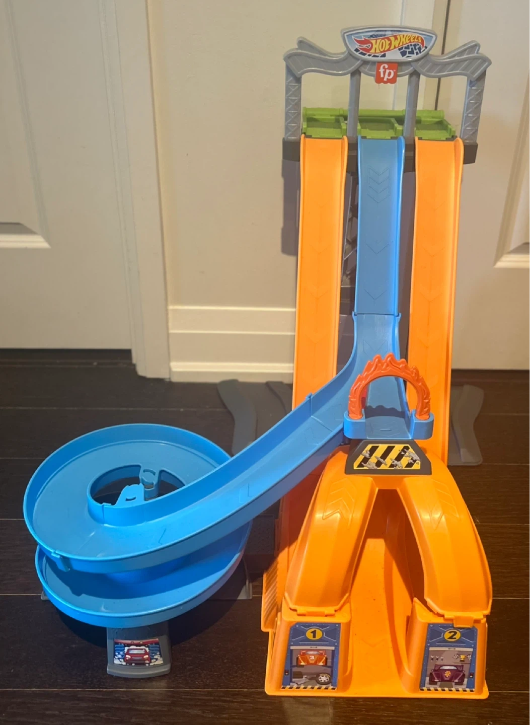 10The top green part makes race car noises. Up to 3 cars can race at a time. In great shape ready for pick up with cash only.