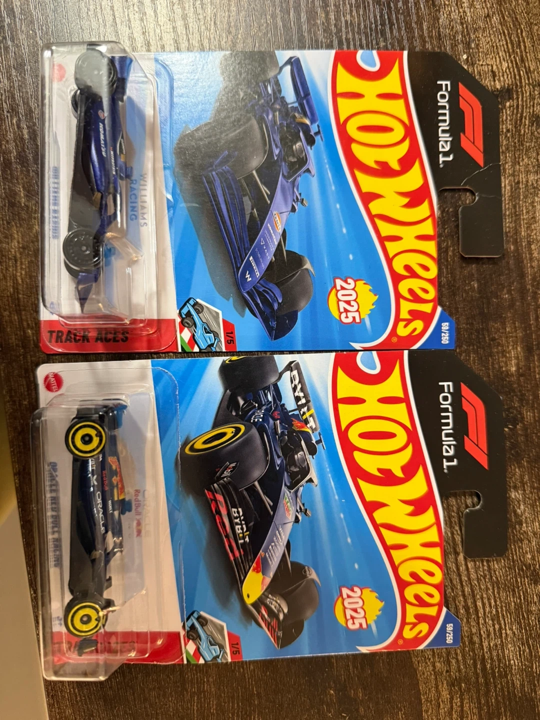 317I'm selling two Hot Wheels Formula 1 diecast cars. One is a Williams Racing car and the other is an Oracle Red Bull Racing car. Both are in their original packaging with a 2025 date on the packaging. 8 $ each or trade