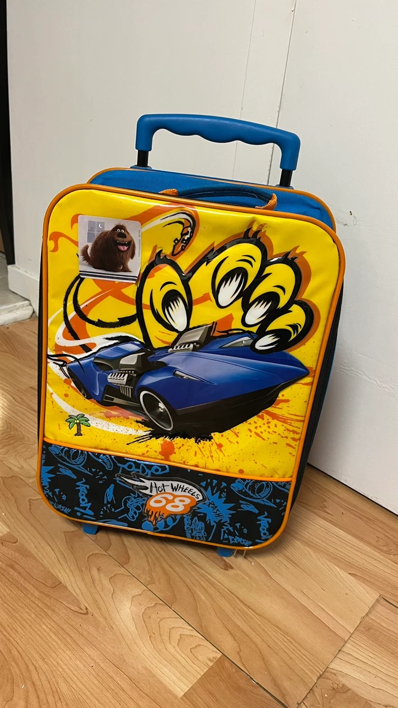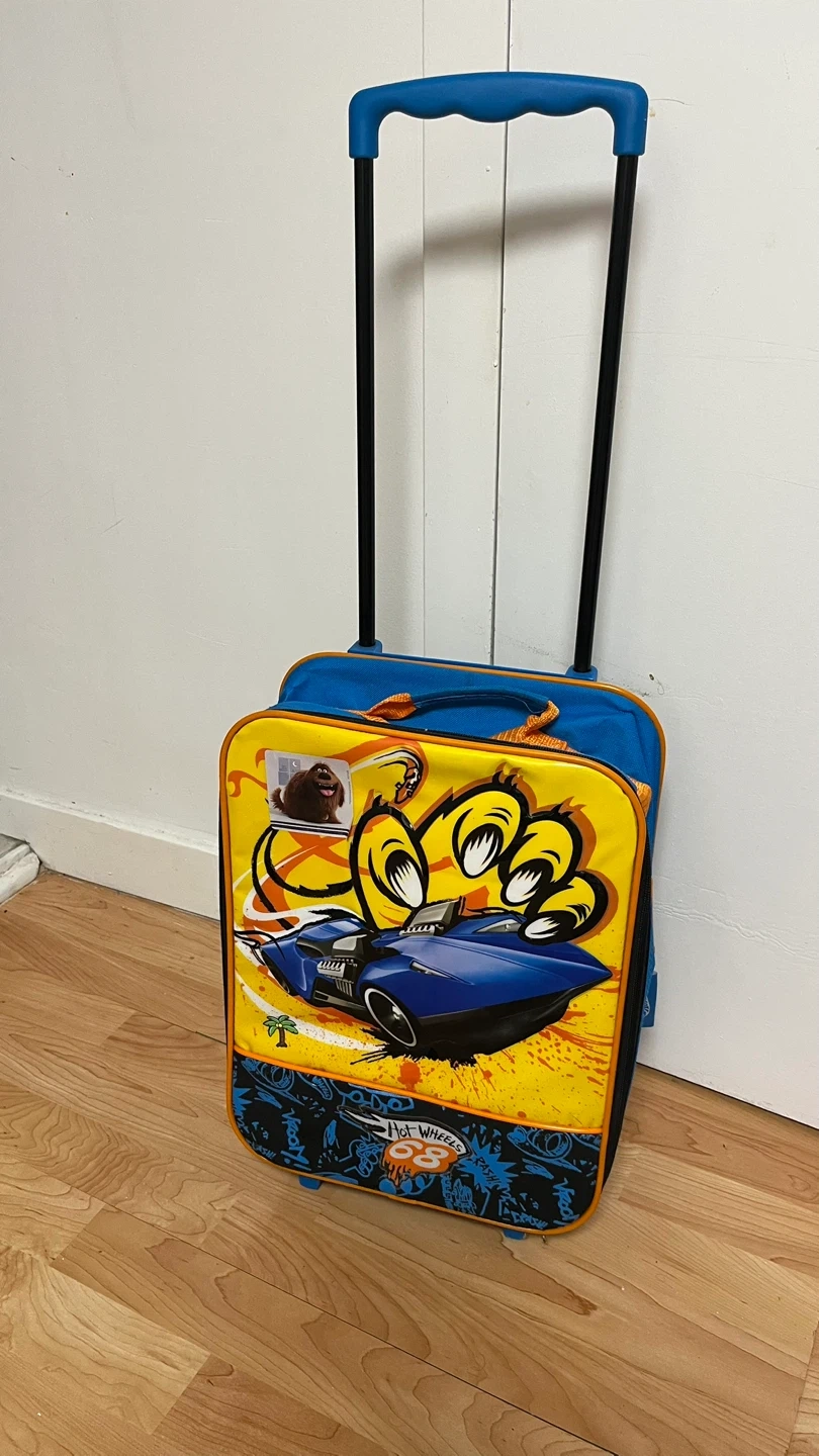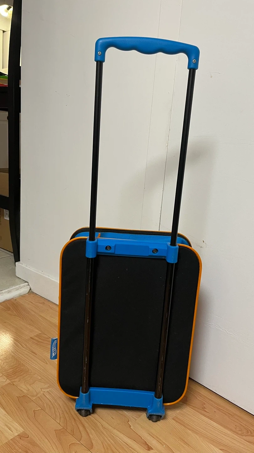 90Hot Wheels rolling luggage, perfect for your little one's travels! Features a fun Hot Wheels design and extendable handle for easy maneuvering. Great for carrying toys, clothes, and other essentials on trips or sleepovers