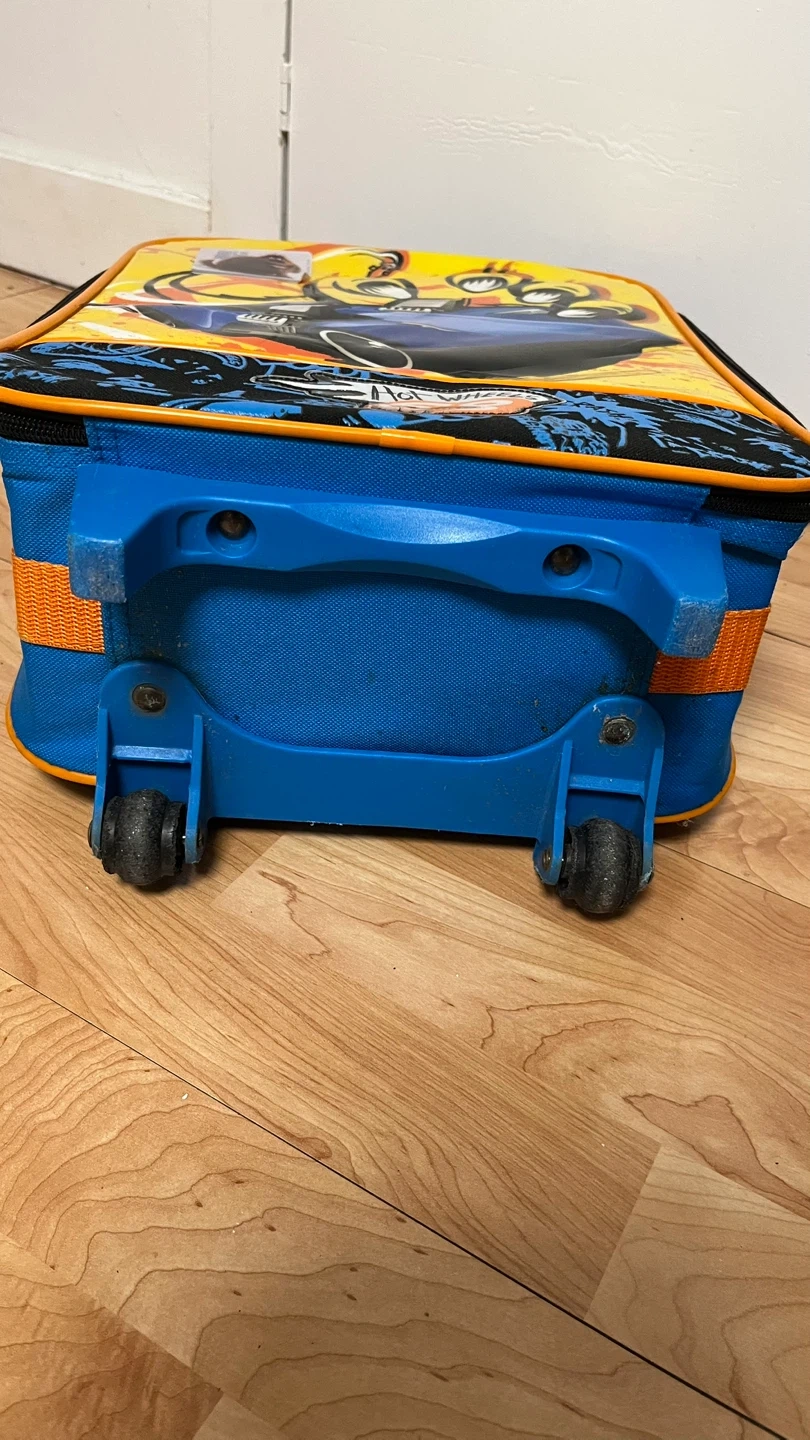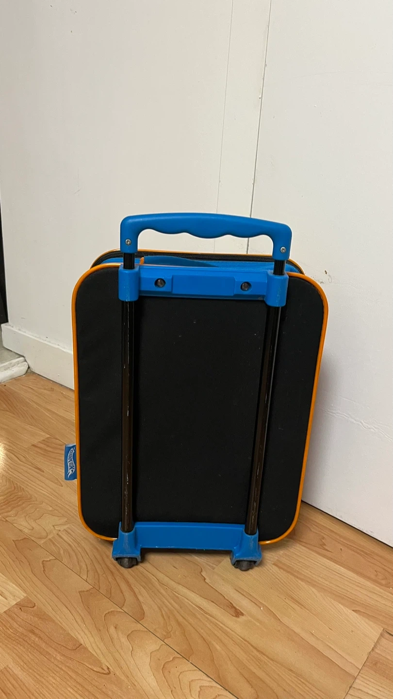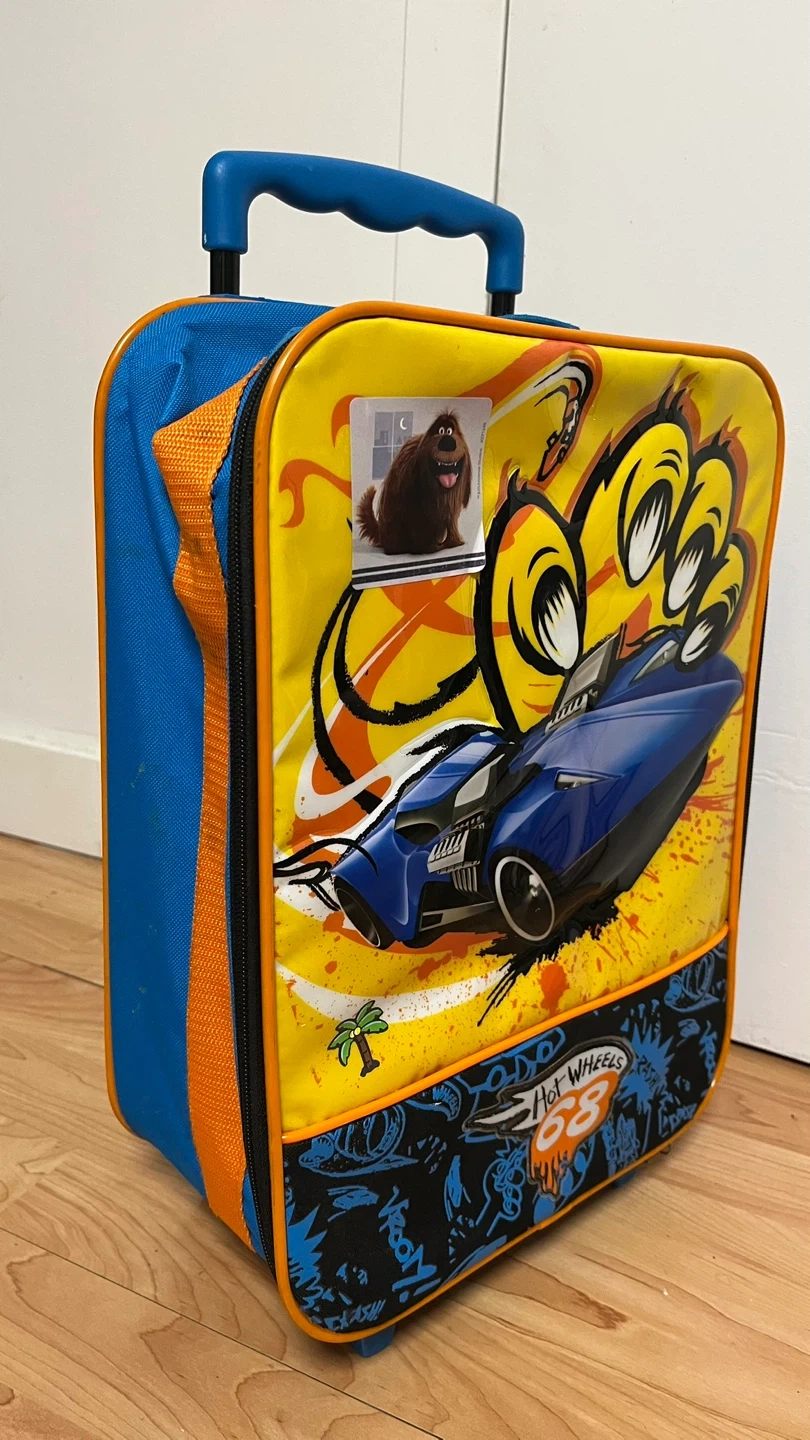 90Hot Wheels rolling luggage, perfect for your little one's travels! Features a fun Hot Wheels design and extendable handle for easy maneuvering. Great for carrying toys, clothes, and other essentials on trips or sleepovers